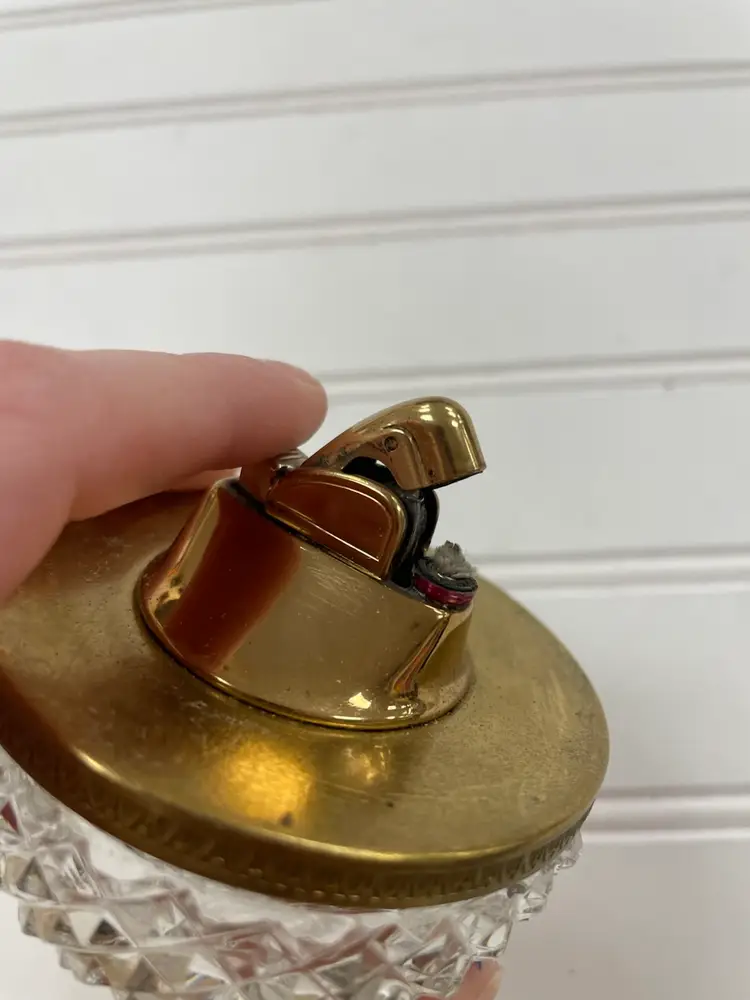 Vintage MCM Diamond Cut Crystal Glass Pear Shape Table Lighter Italy AS IS