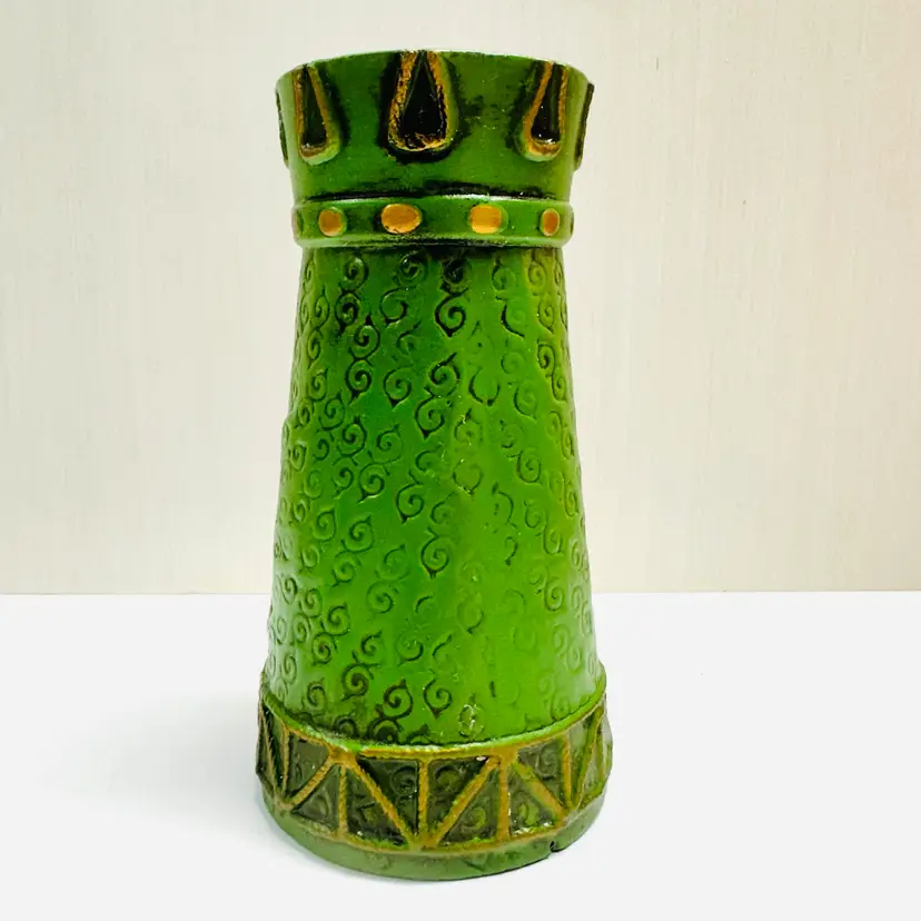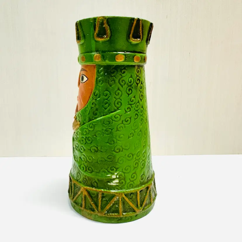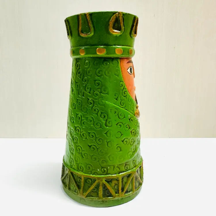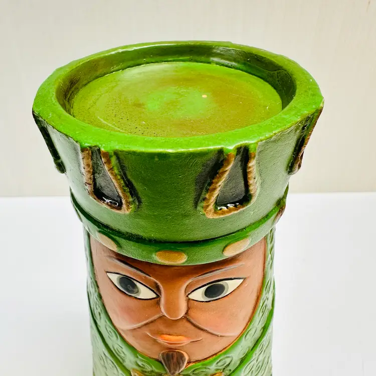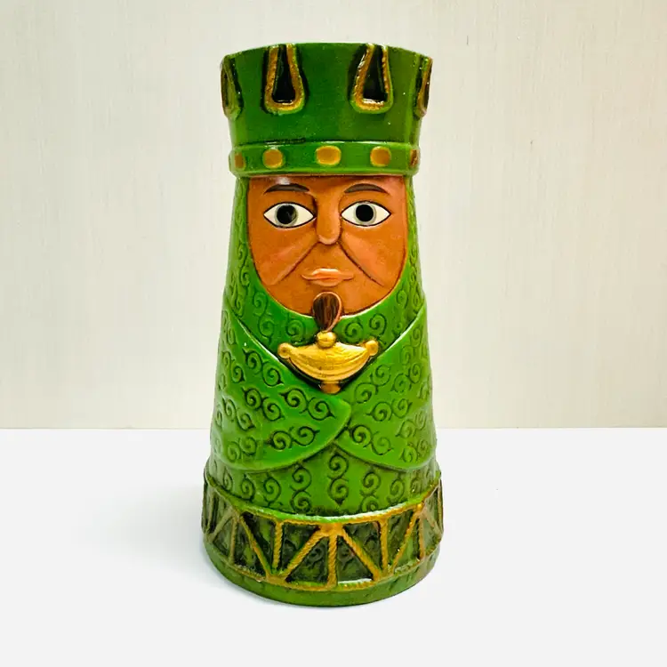 Previously owned Dickson green toned Wiseman holding frankincense, myrrh figurine or candle holder. There is a maker sticker on bottom (see pictures). Please note that there is paint scuffing on side (see pictures).
