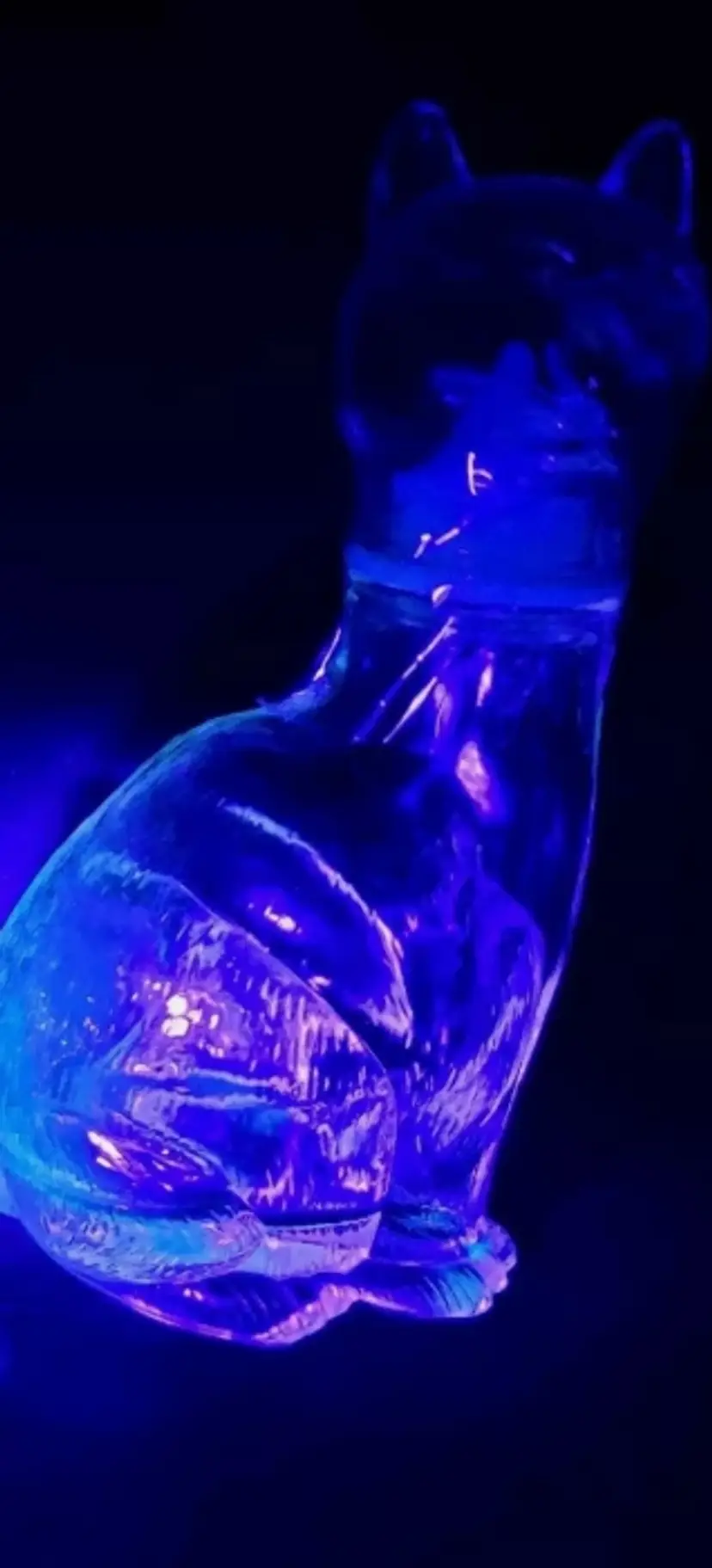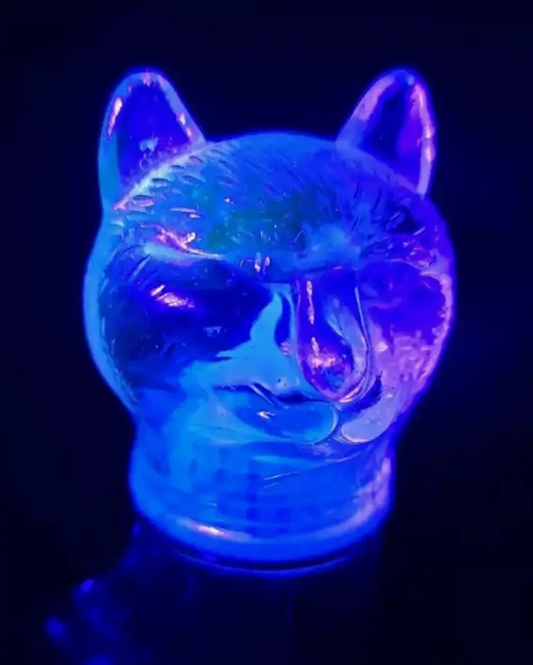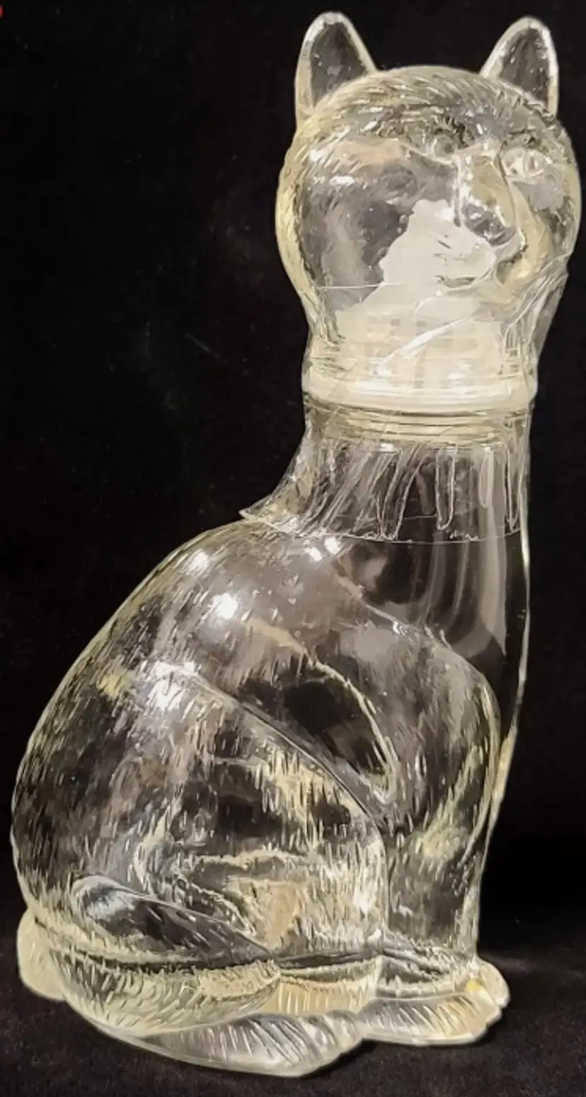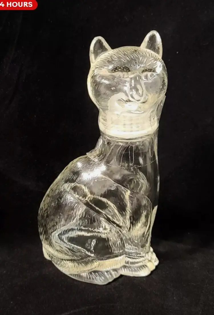 This vintage Empoli clear glass cat decanter is a unique addition to any barware collection. The decanter features a stunning UV glow that adds a touch of fun to any cocktail presentation. Made from high-quality glass, this decanter is perfect for serving your favorite spirits. The cat design is adorable and adds a touch of whimsy to your bar. This decanter is perfect for cat lovers and collectors alike.