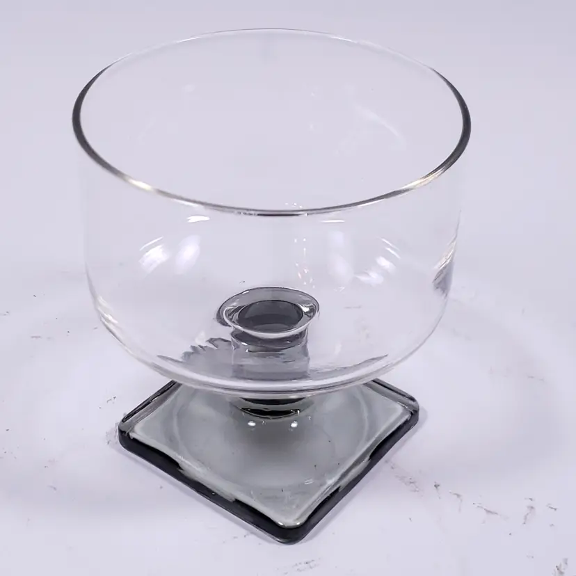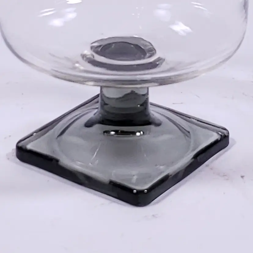 • Clear round bowl with smoky gray, square foot