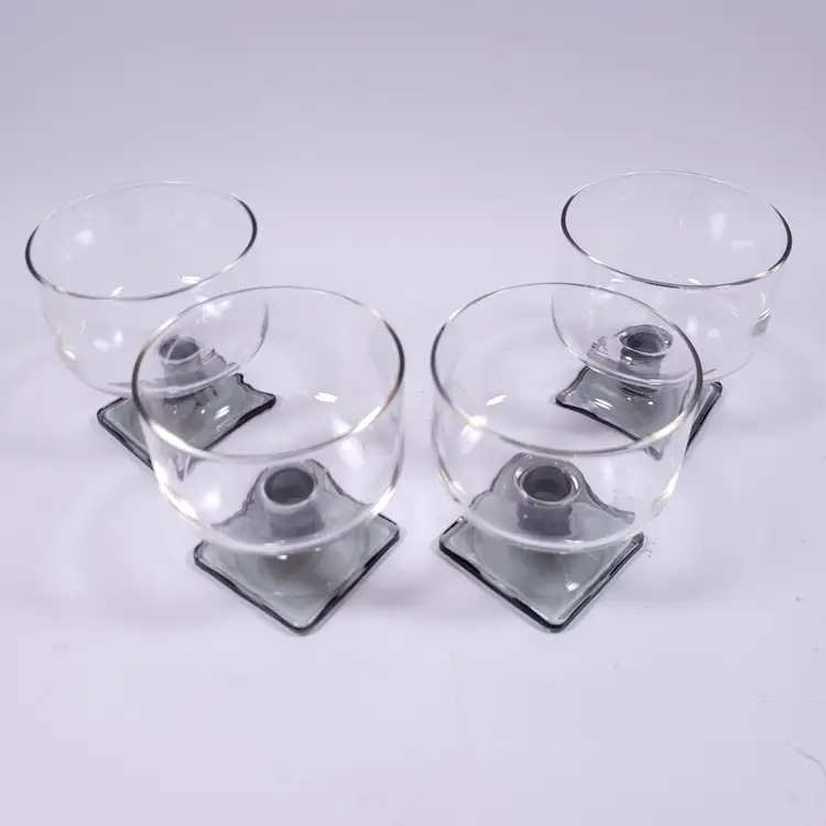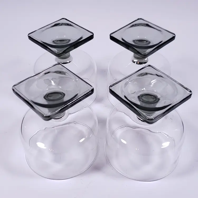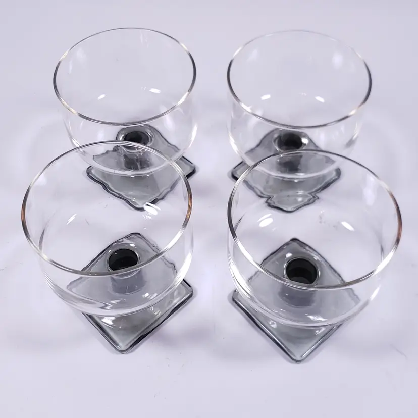 Vintage MCM FEDERAL GLASS Nordic Midnight Smoke Square Foot Cocktail GLASS SET