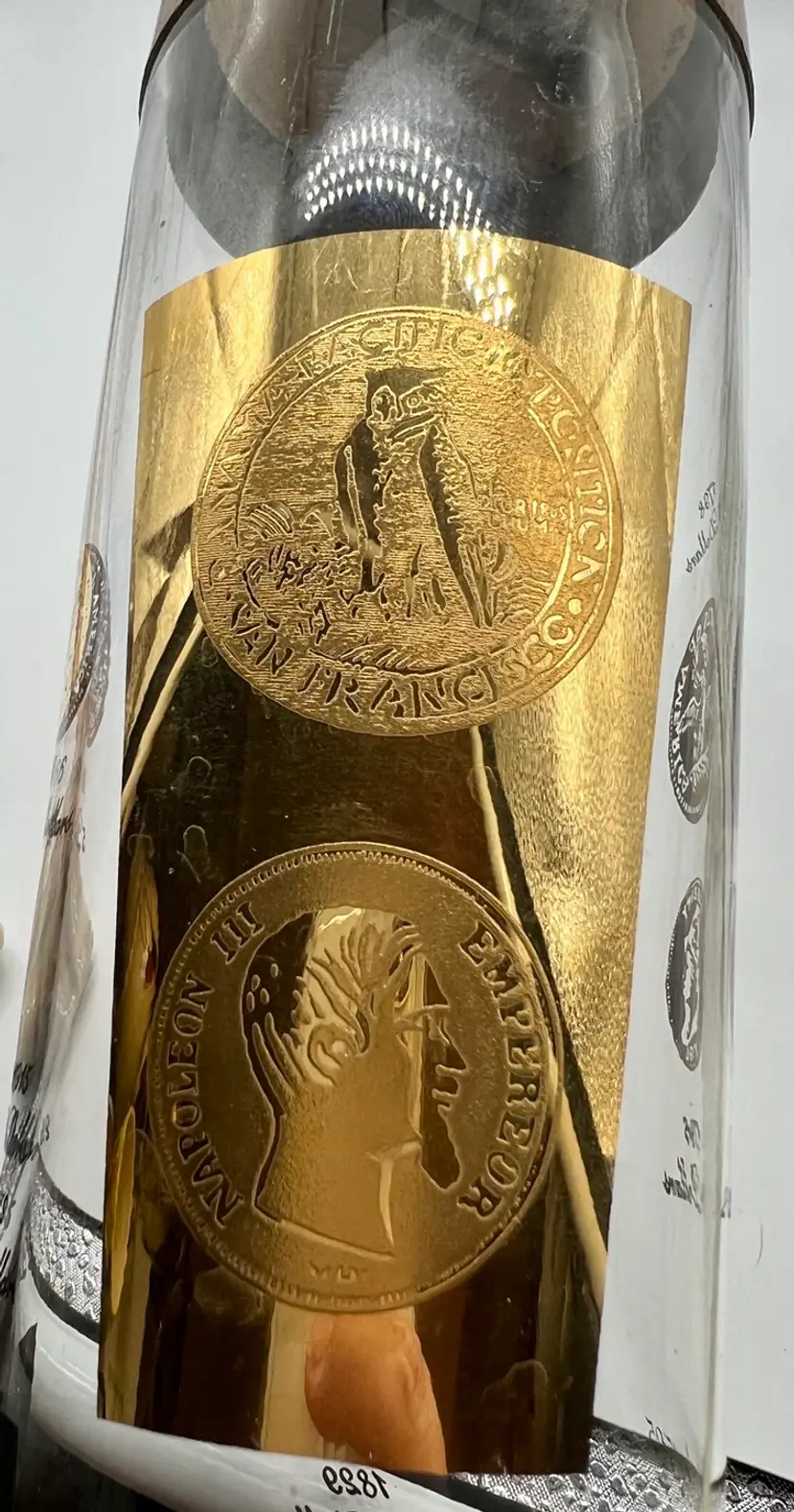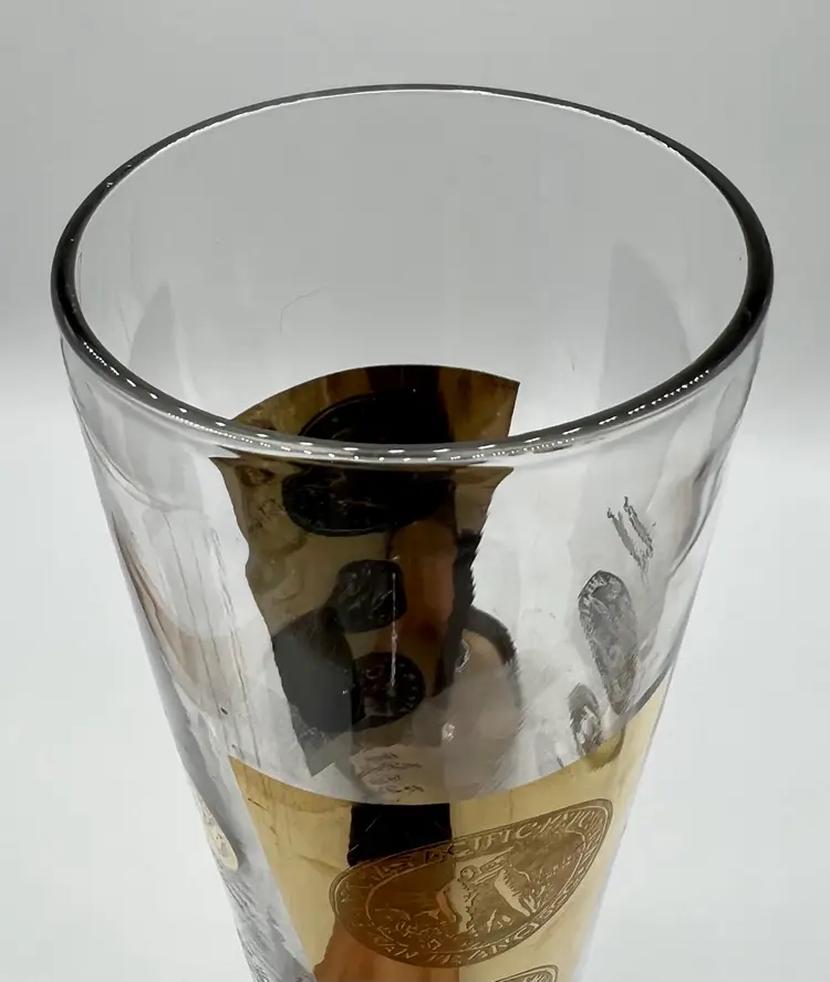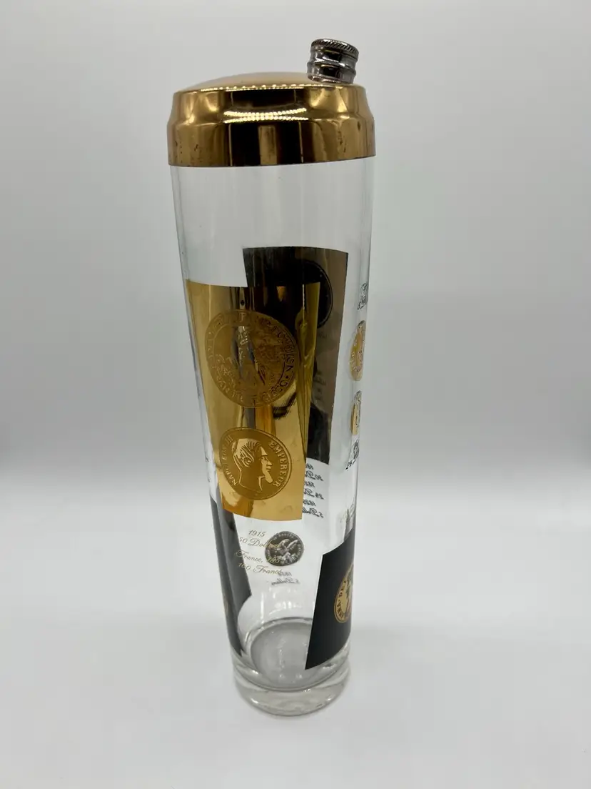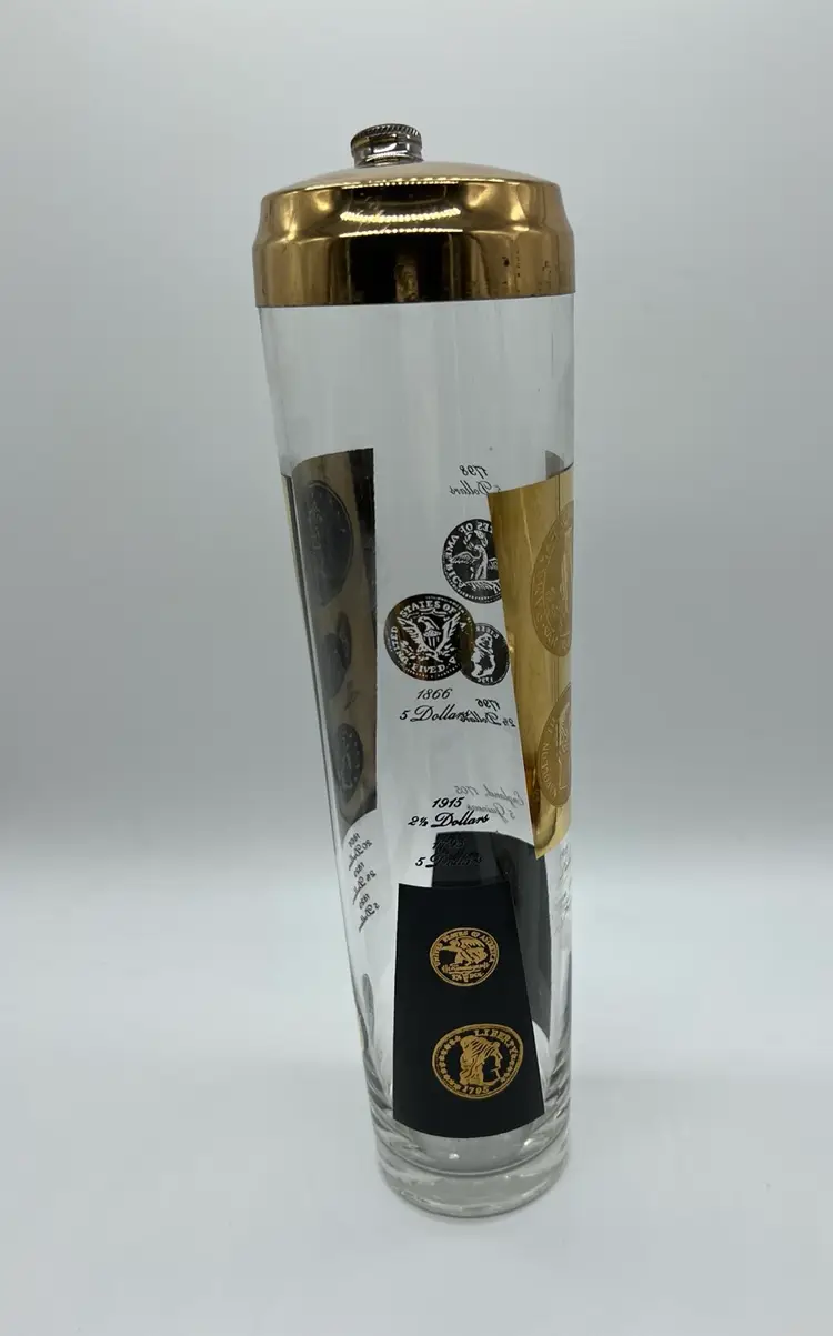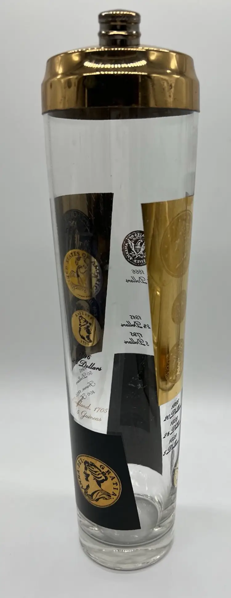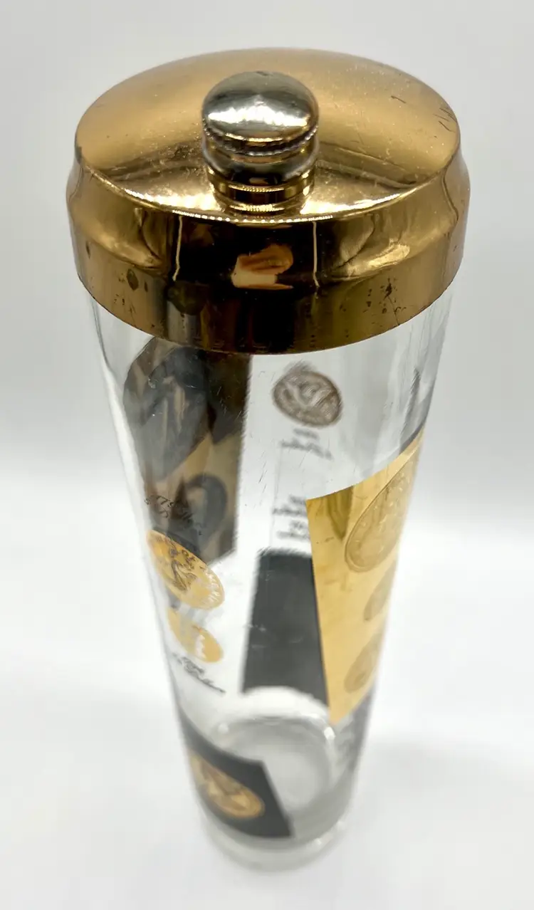 Vintage MCM Glass Cocktail Shaker Cera Gold & Black Coin Pattern Drink Barware