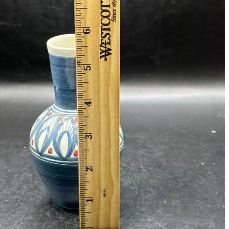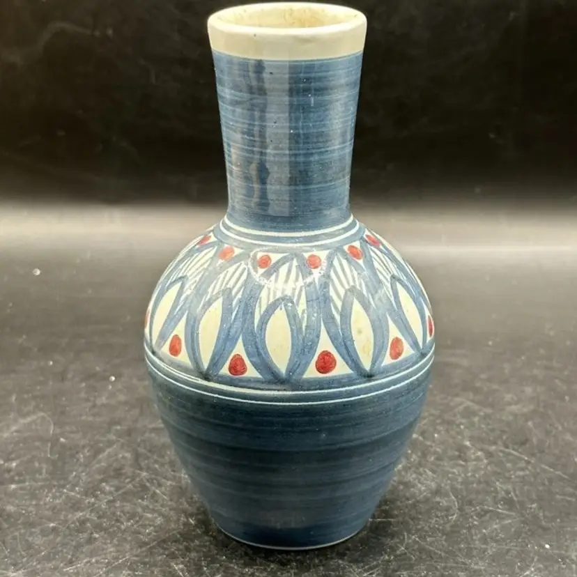 The mid-century modern style and art pottery production style give this vase a timeless appeal, while the Norse pottery techniques used in its creation make it a unique and valuable item. Perfect for displaying flowers or as a decorative piece on its own, this vase is a must-have for any pottery and art enthusiast.