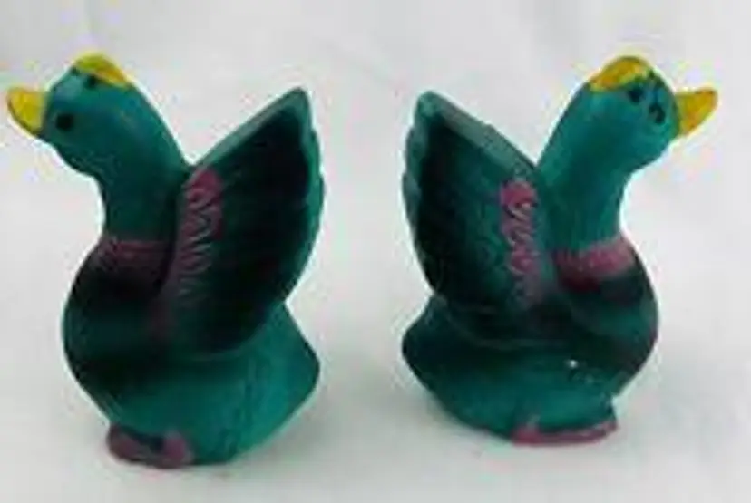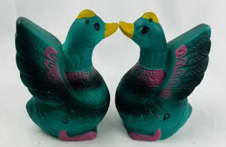 Elevate your Mid-Century Modern table setting with these vibrant Vintage MCM Japan Swan Salt & Pepper Shakers, each measuring 3.5 inches in height. In excellent condition and free from any defects, these brightly colored shakers are a delightful blend of functionality and artistry. Their unique design and striking hues are sure to add a touch of retro charm to your dining experience. Whether you're a collector of MCM decor or simply appreciate whimsical and colorful table accents, these swan salt and pepper shakers are a must-have. Don't miss out on the opportunity to own this excellent vintage pair - click Buy It Now and infuse your table with a burst of MCM nostalgia today!