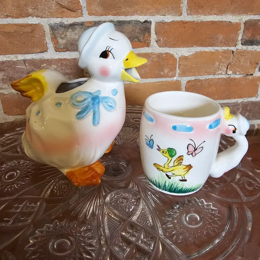 No chips or flaws on either piece. Teapot is 6" tall. Mug is 3" tall.