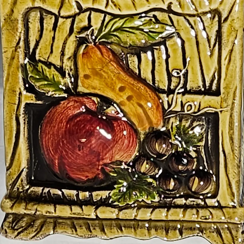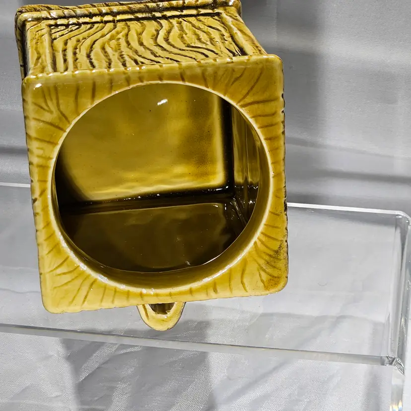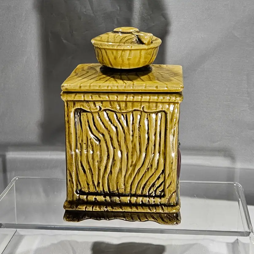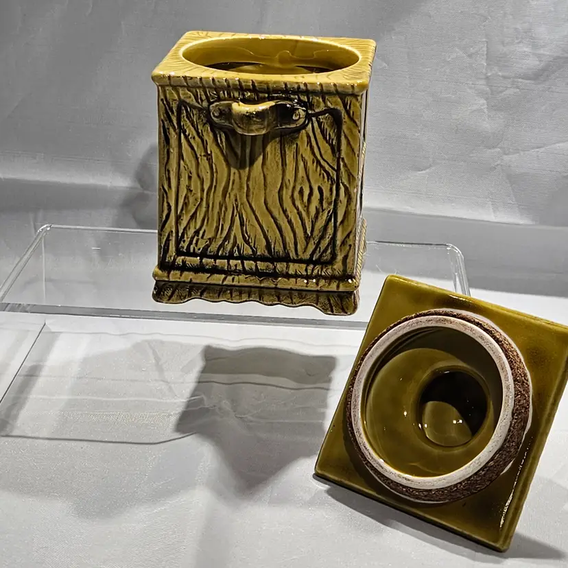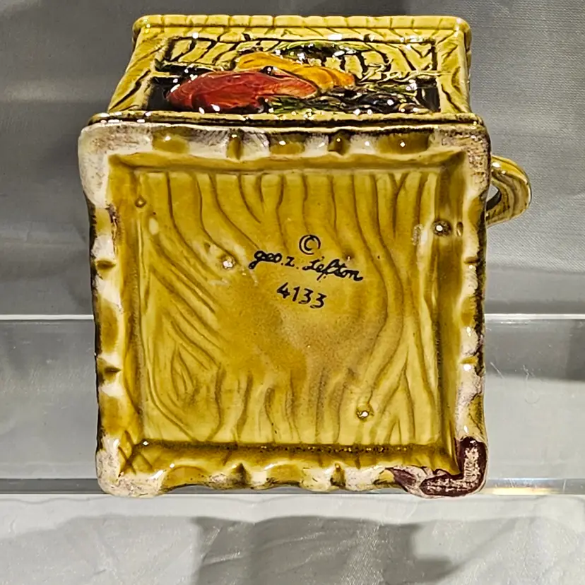 There is a small chip on the corner of the lid and the upper, round, part of the lid - Please see photos Please see photos for size Please see photos for additional details