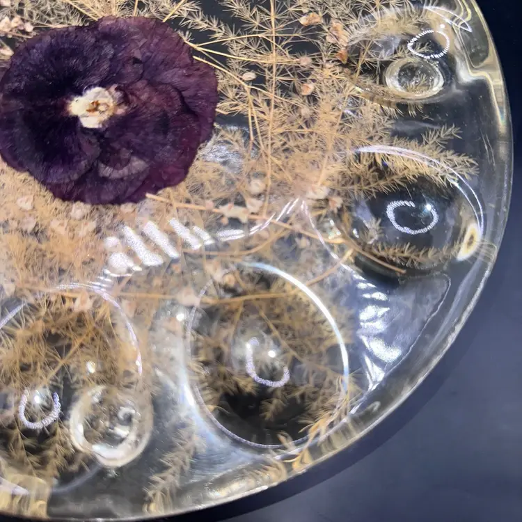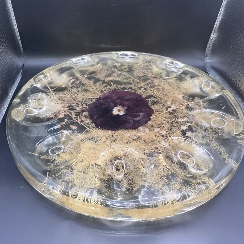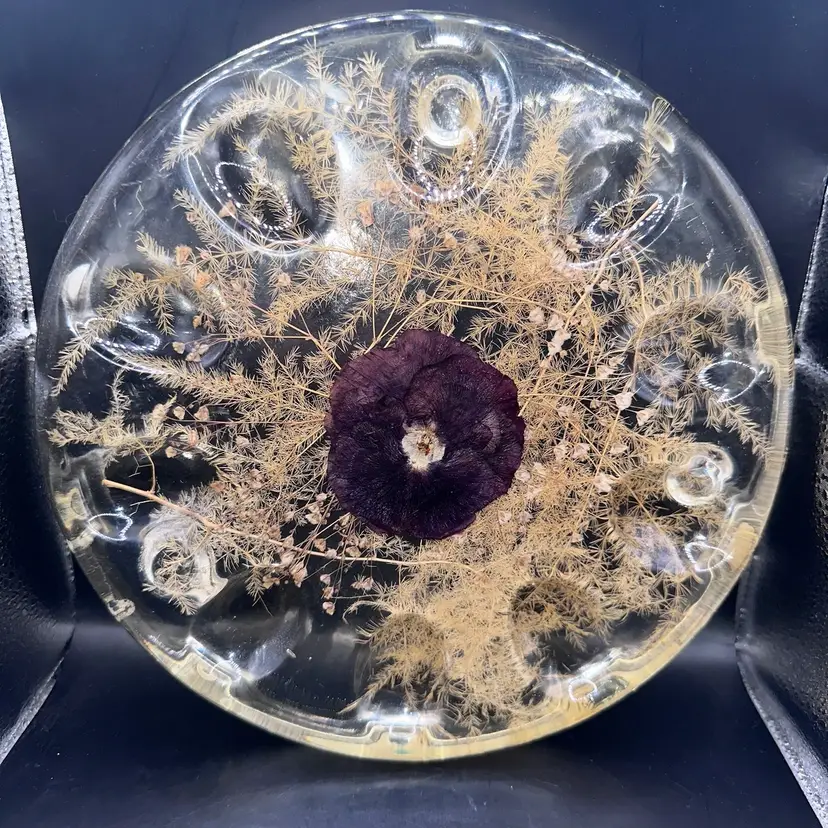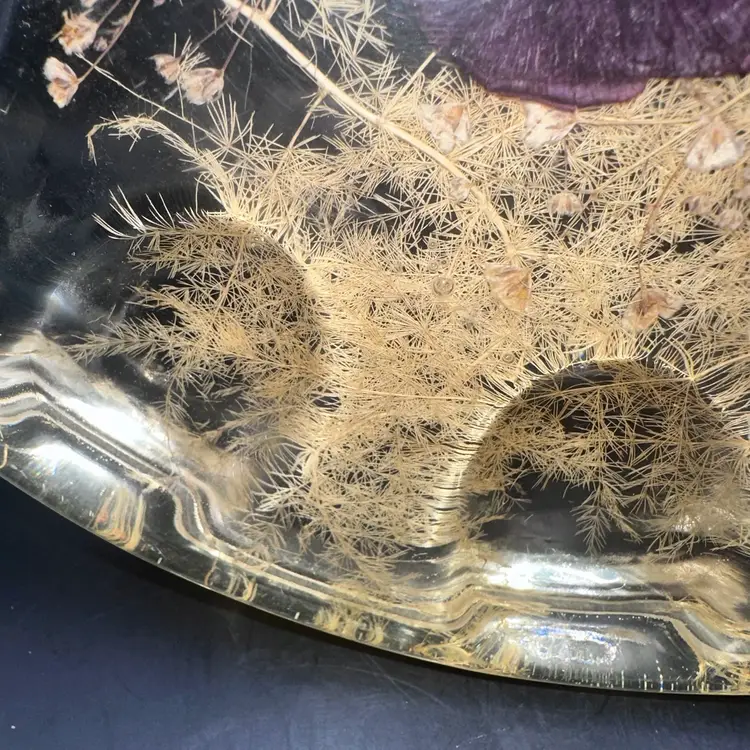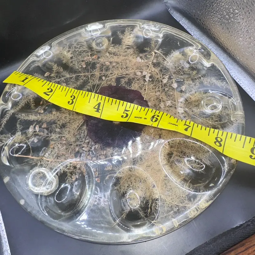 Vintage MCM Lucite Deviled Egg Serving Plate Real Pressed Dried Flower Pansy