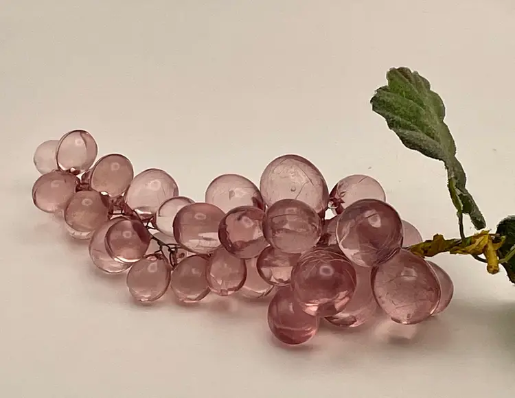 Vintage, MCM, Lucite/Acrylic, Grape Cluster with Sugared Leaves, Lt. Pink/Lilac