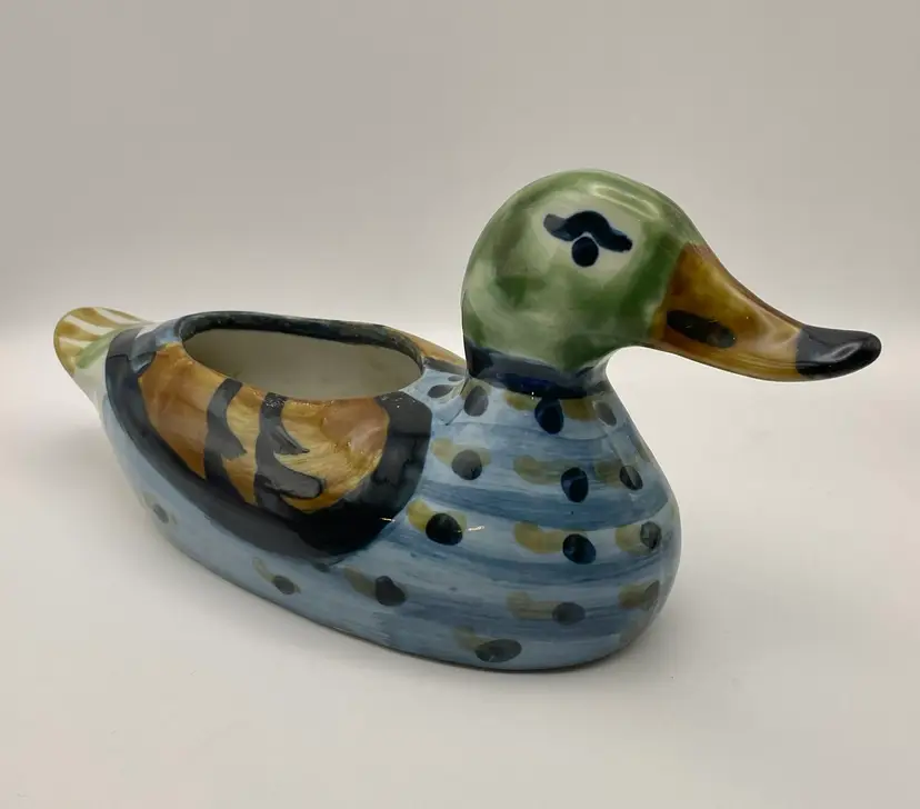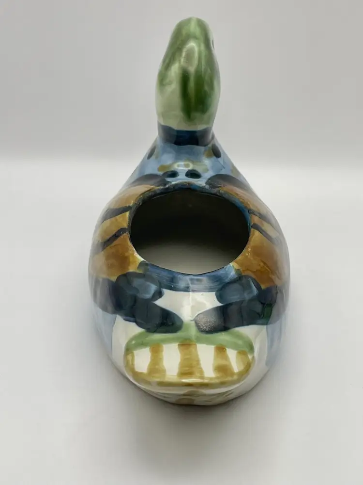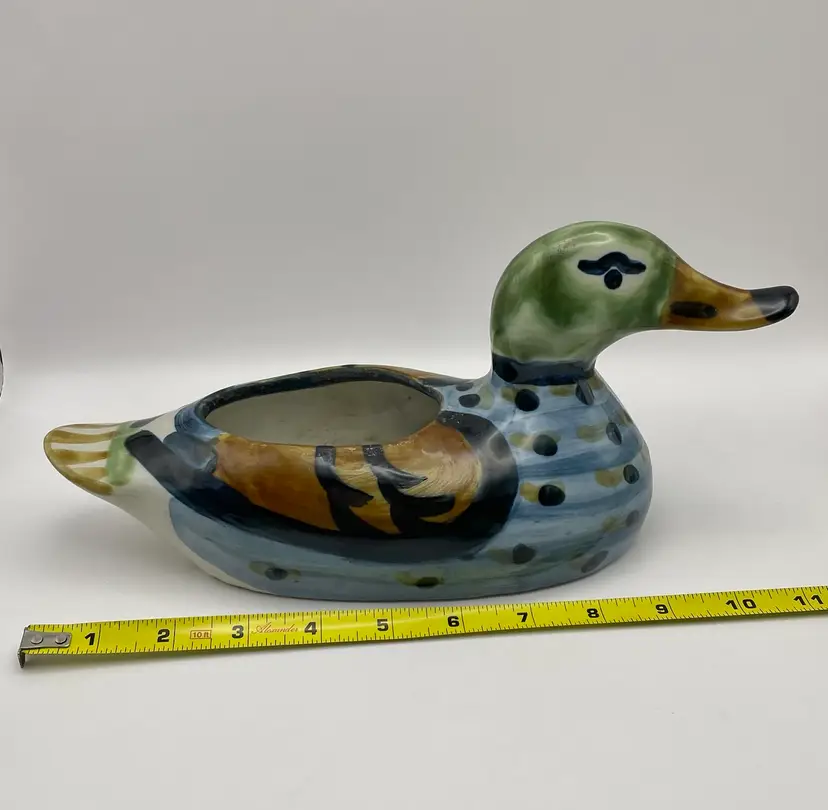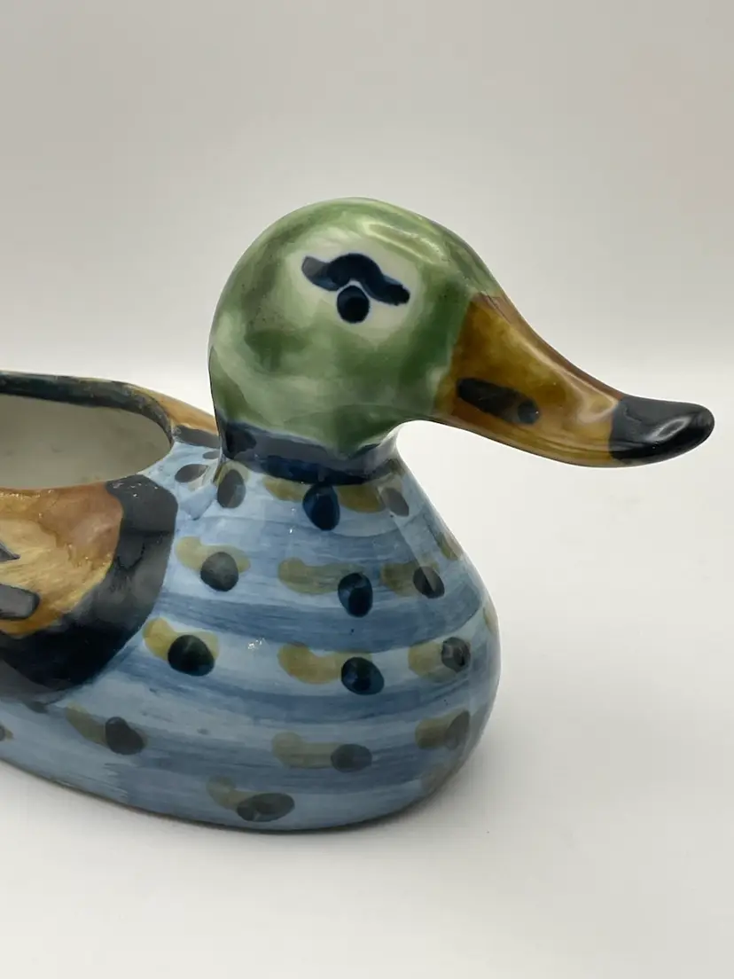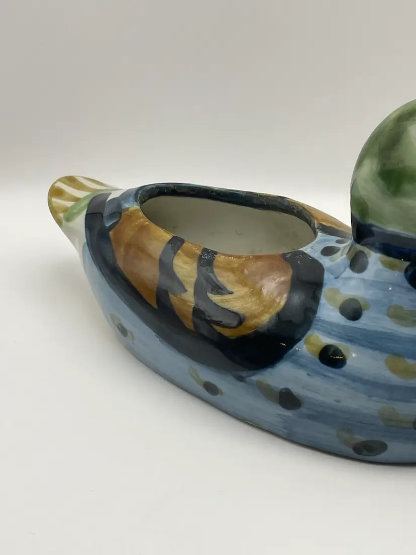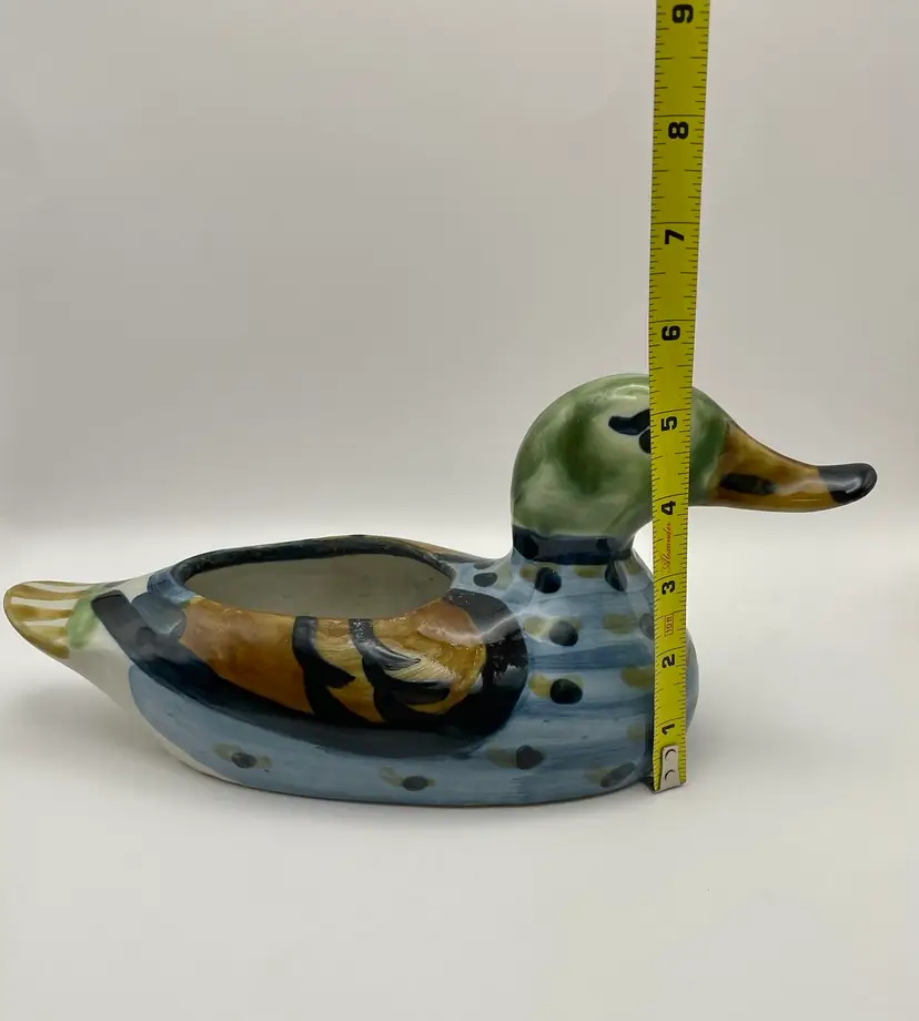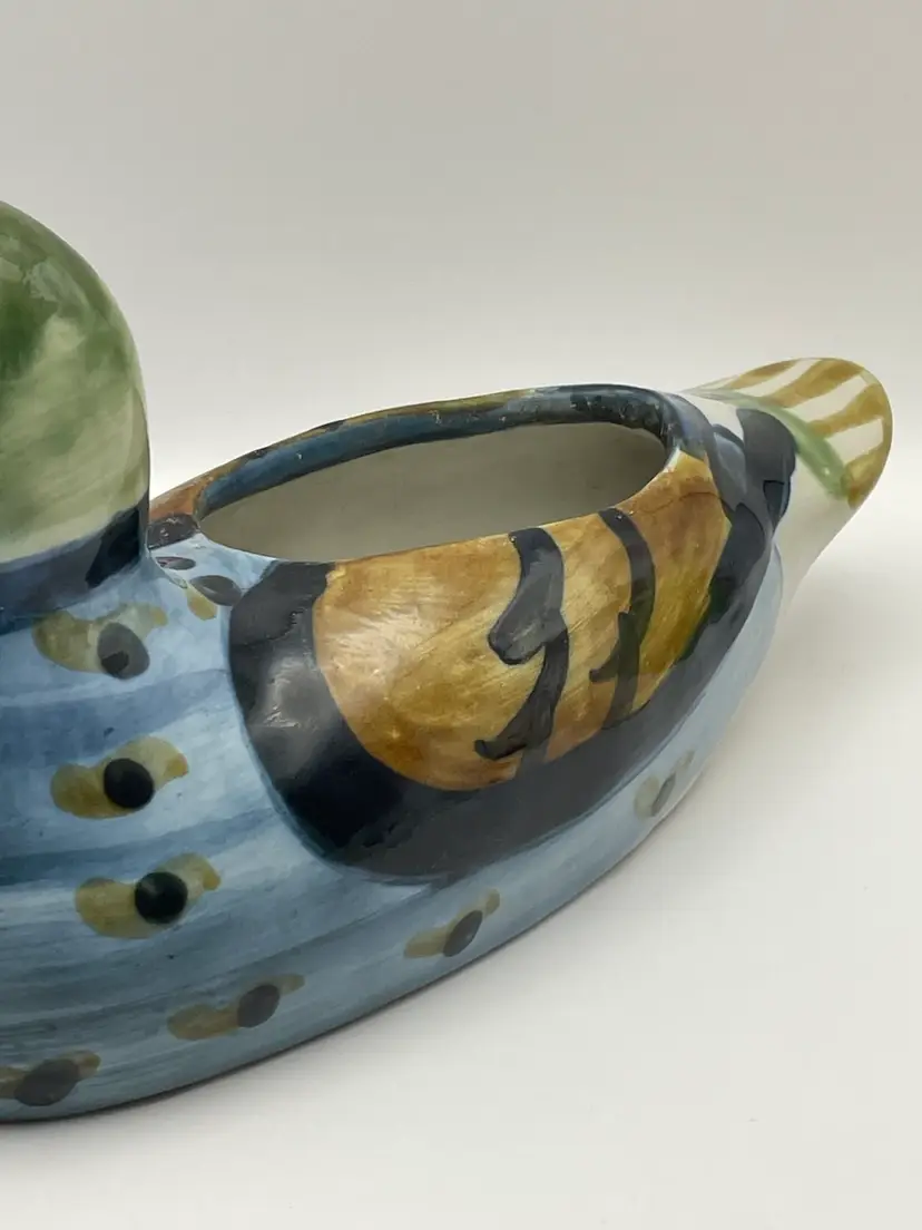 Vintage, MCM, M.A. HADLEY (Mary Alice), Stoneware DUCK PLANTER, Hand painted Pottery, MCM, 10.5” long (Some hard water marks around rim)