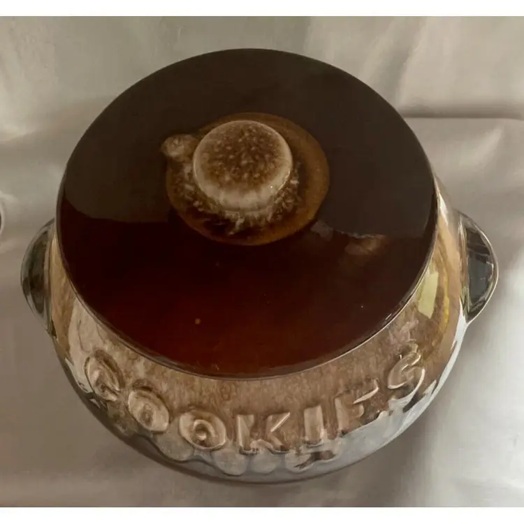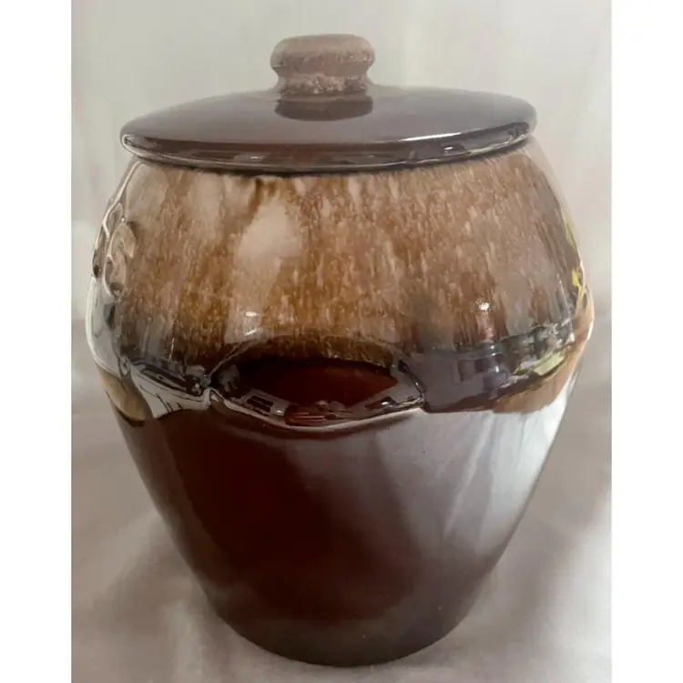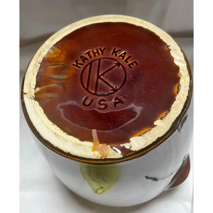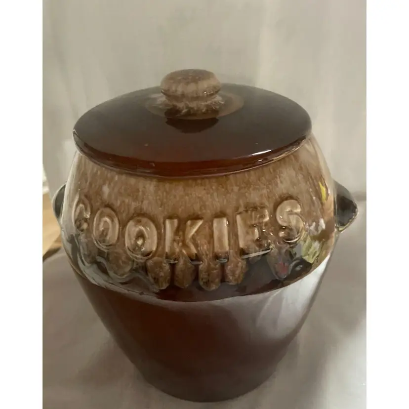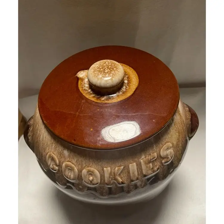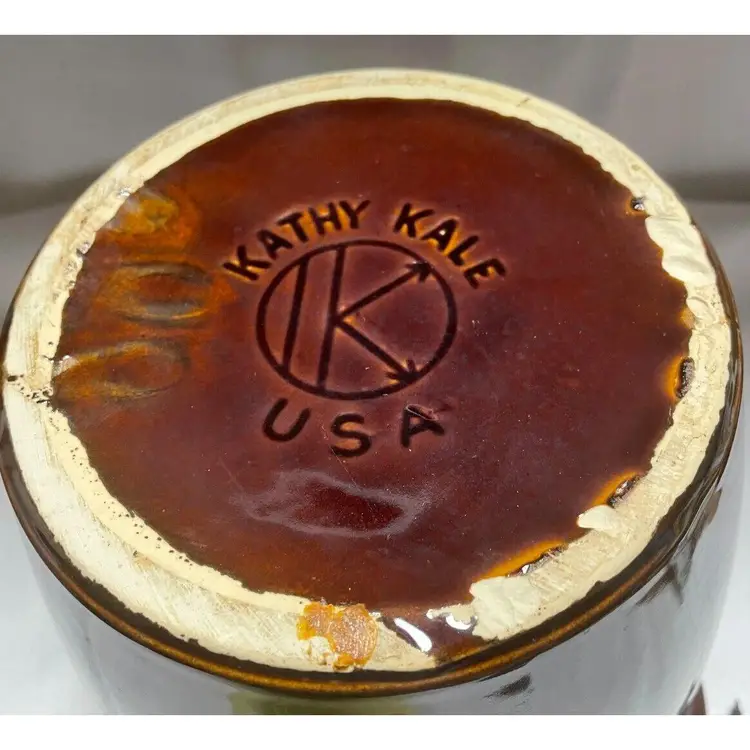 This Vintage midcentury modern McCoy Pottery Brown Glazed Drip Cookie Jar with its original lid by Kathy Kale is in excellent "pre-owned" condition, with no chips, cracks or scratches, however it is a vintage item and there may be wear consistent with its age. Please review all pictures for proper assessment of "pre-owned" condition.