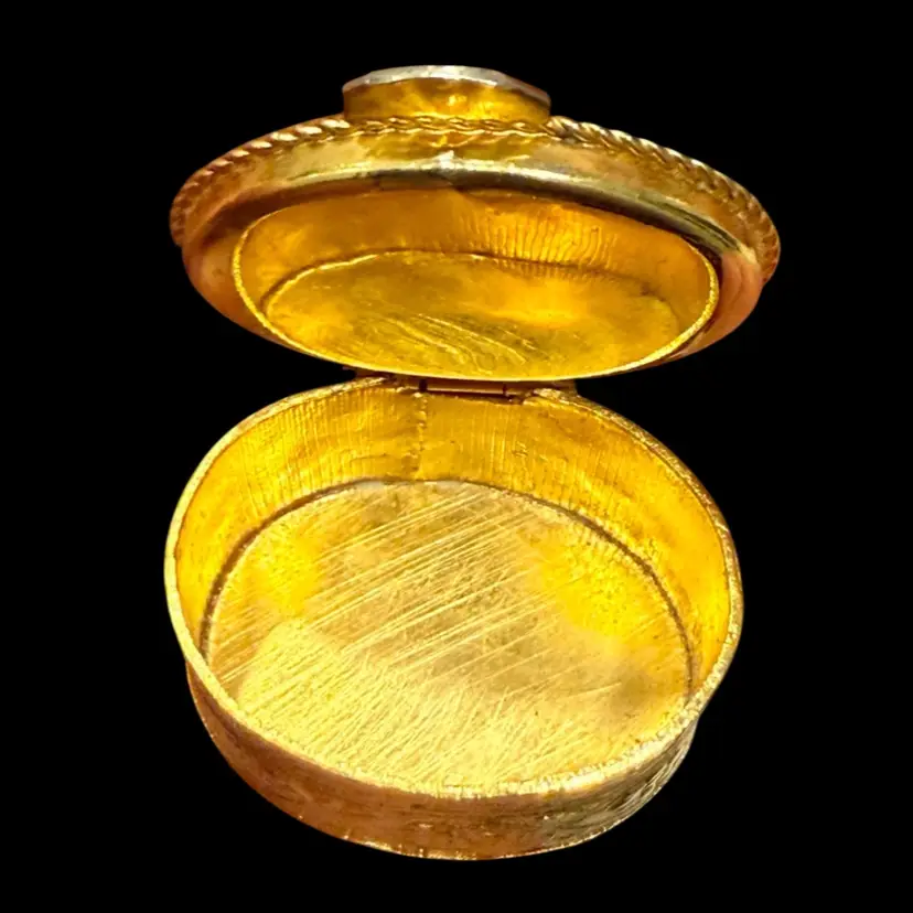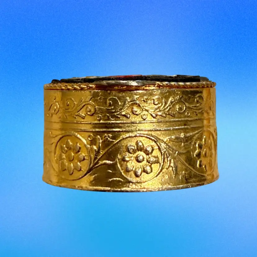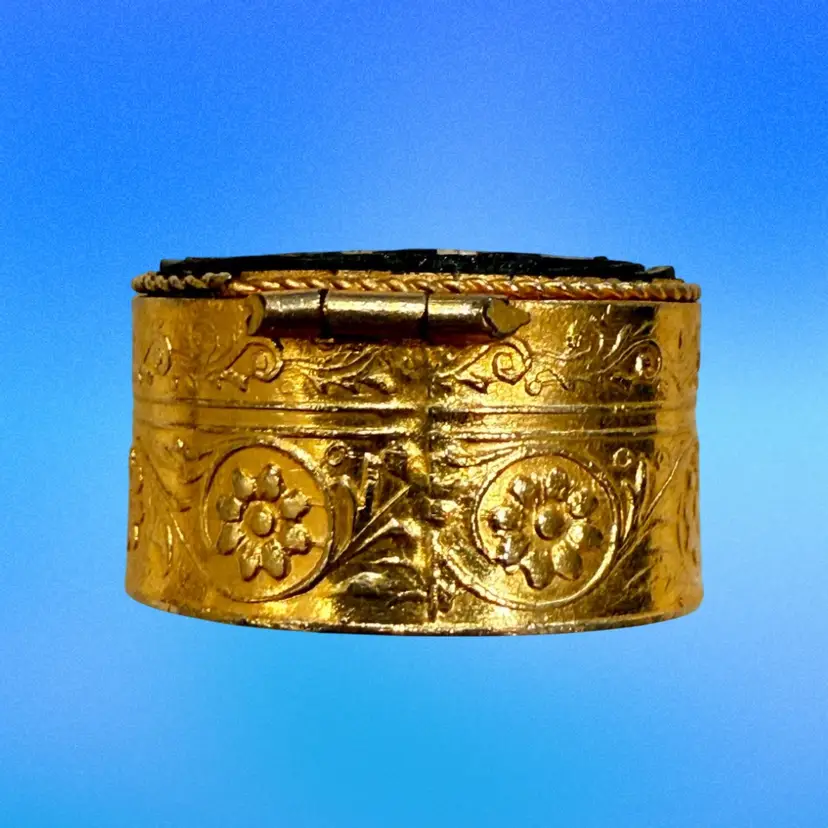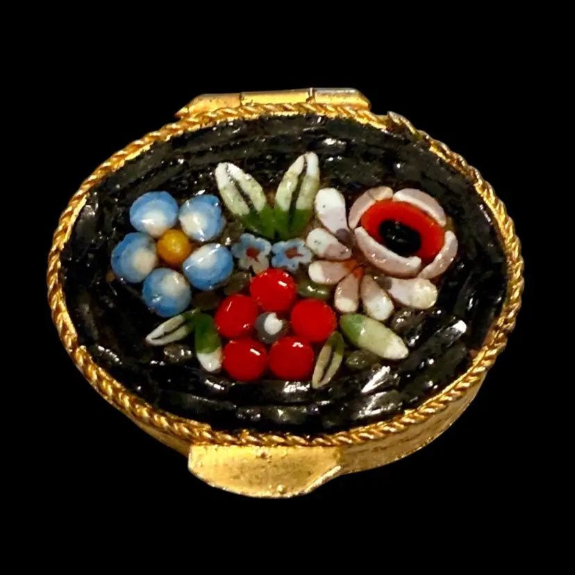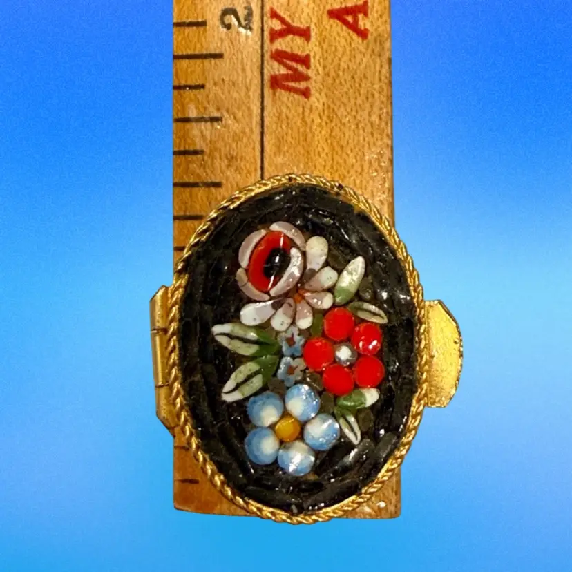 Vintage MCM Miniature 1.25” Micro Mosaic GoldTone Trinket Box