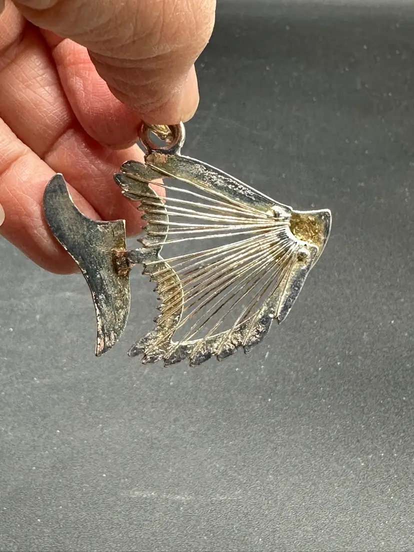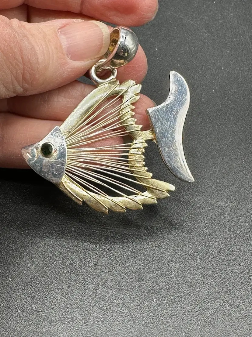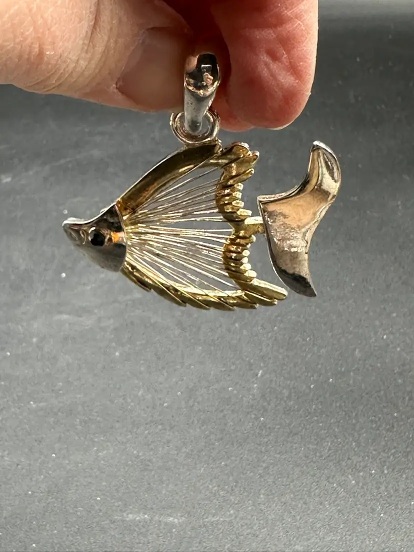 Vintage MCM Mixed Metal Angel Fish Pendant, 2-1/4 inches