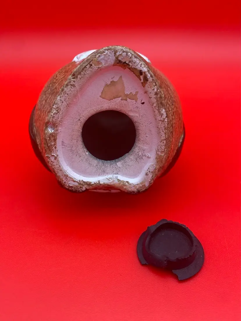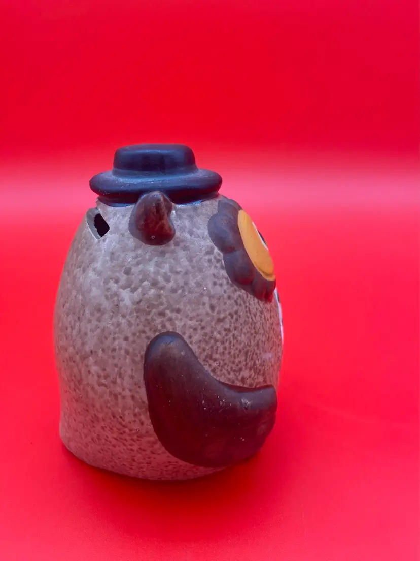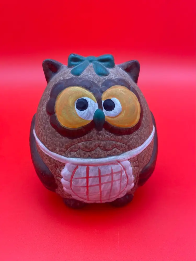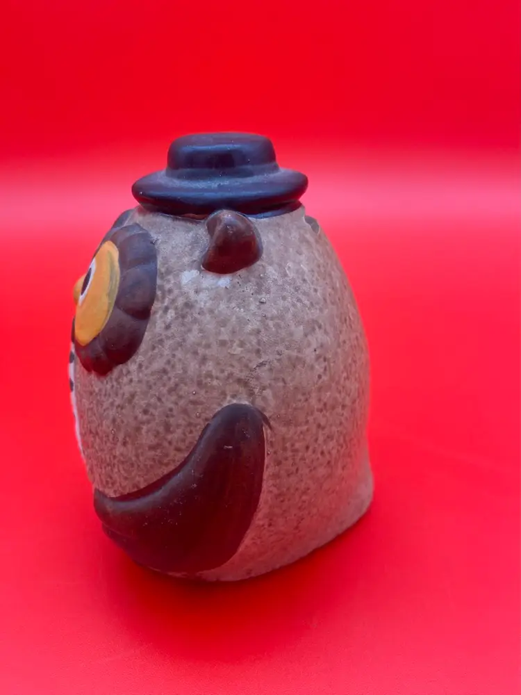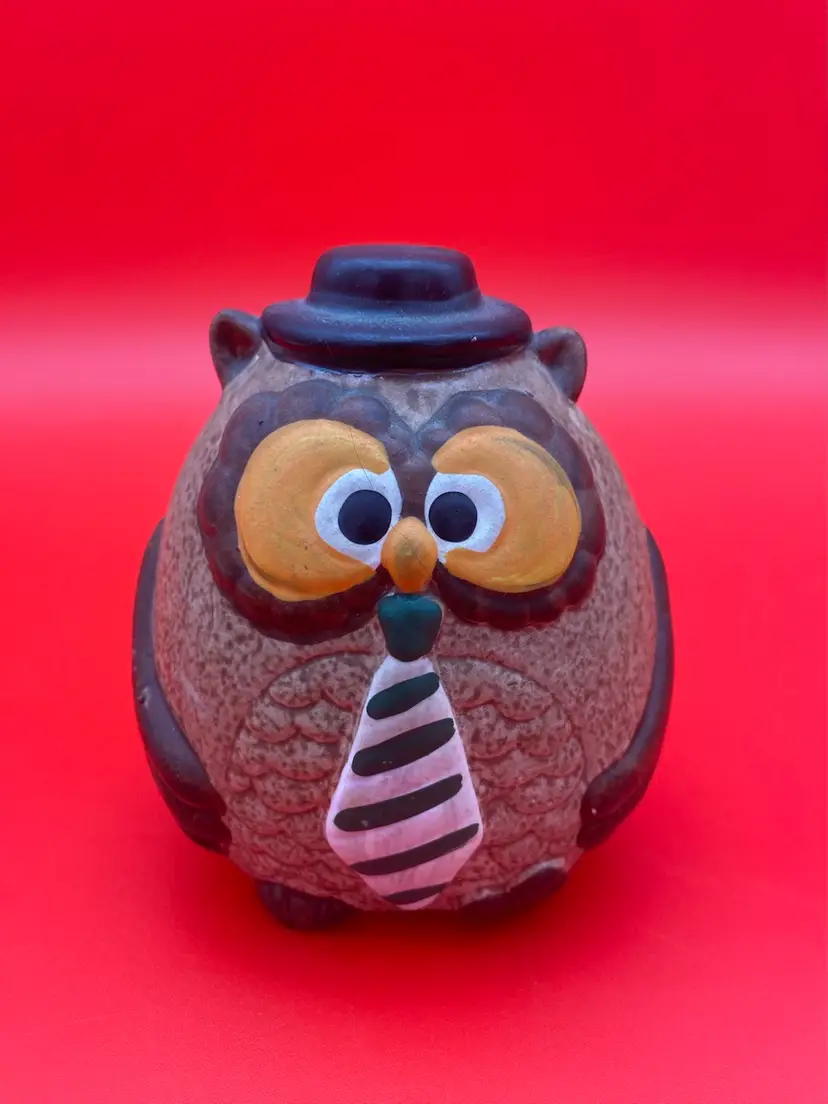 You are purchasing a pair of hand-painted Ceramic Owl Piggy Banks. These Owls are around 4.5 inches tall. These Owls are in overall good condition with no chips. Mr. Owl does have a hairline crack along his top half. The Stopper on Mrs. Owl has some deterioration and comes out when picked up.