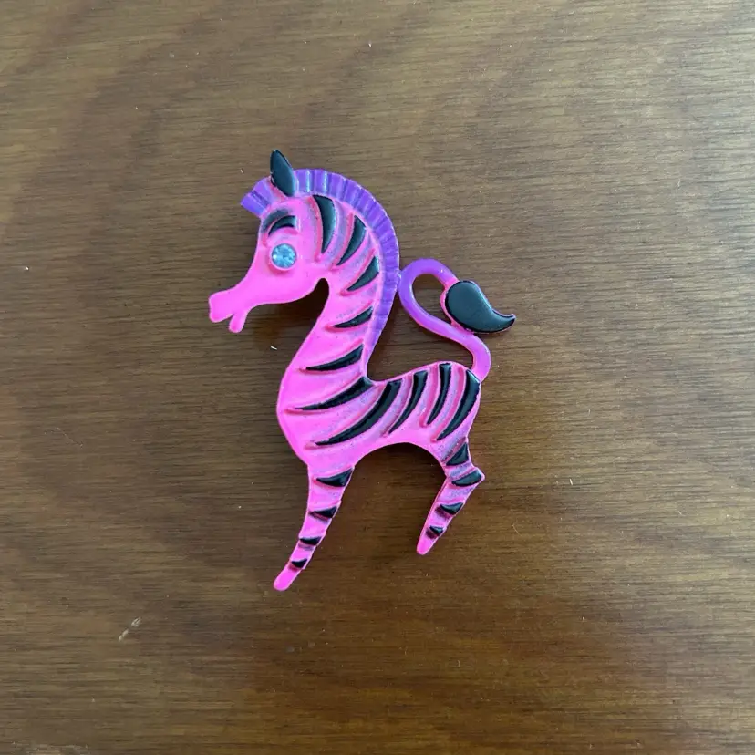 Vintage MCM Neon Pink Zebra Pin Brooch Retro Jewelry Mid Century Modern