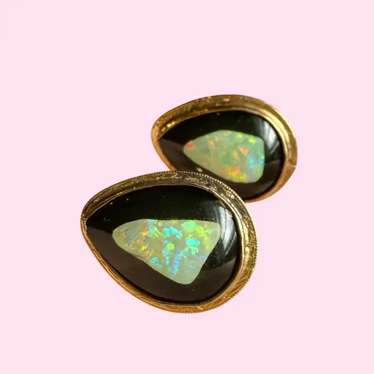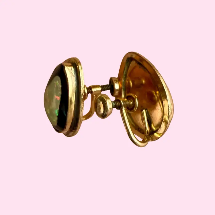 0.5"x0.75" Vintage Opal Triplet Screw Back Earrings – 1/20 10K Gold Filled