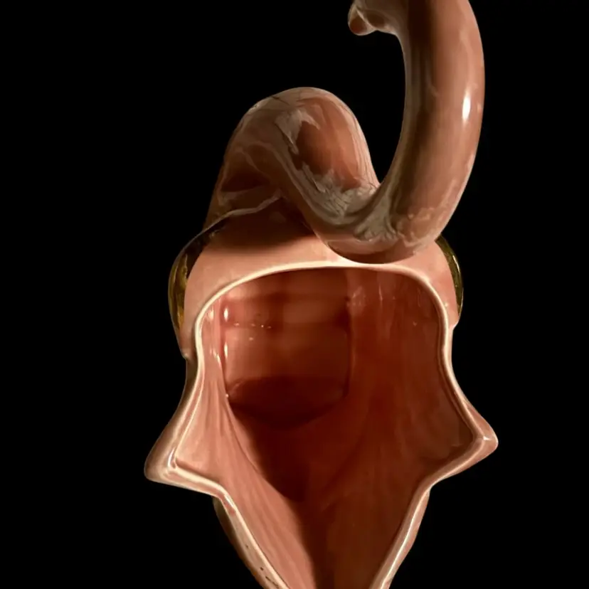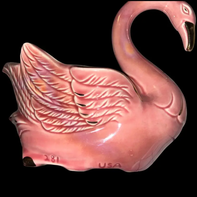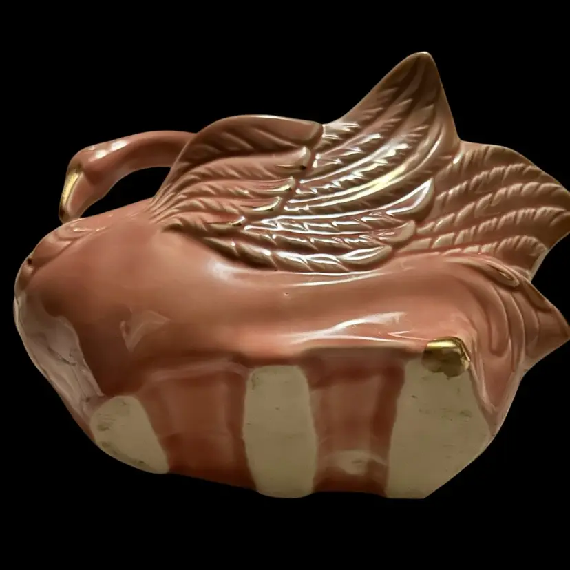 Vintage MCM Pink Swan Planter , Iridescent , Gold Detail