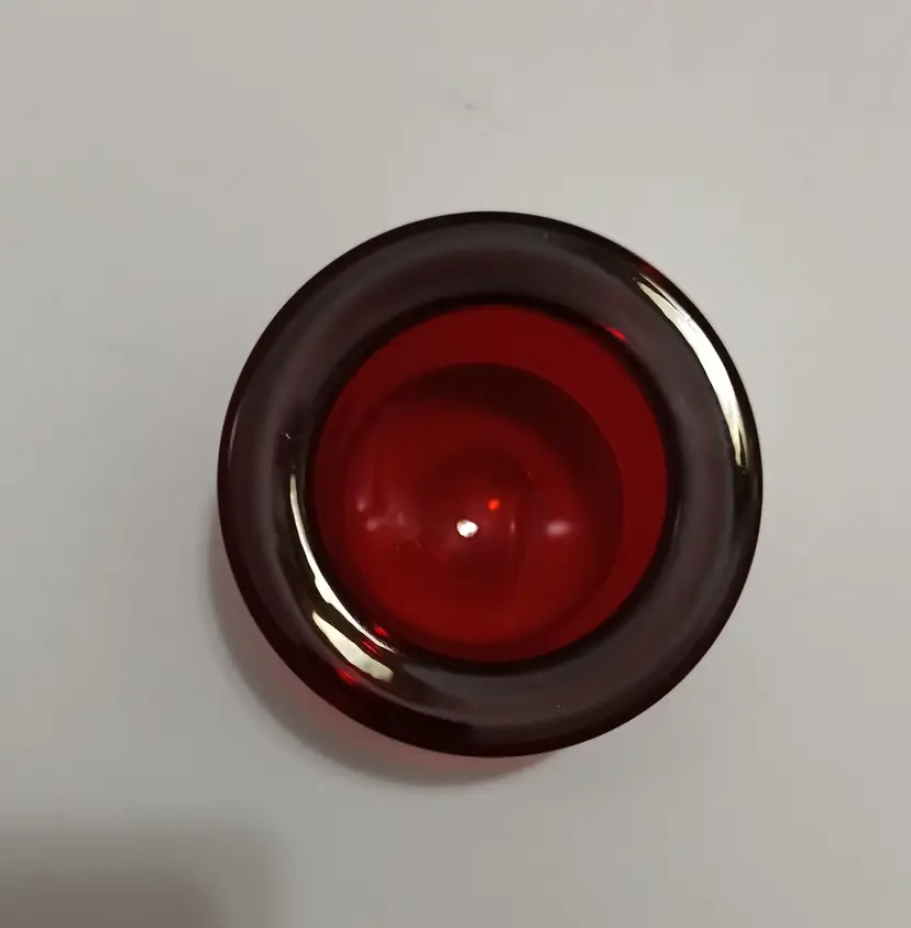 Vintage Red Glass Glowing Votive; Very Nice Condition; No Chips or Cracks; 3"W x 2" T x 1.5" Deep; Nice piece of UV Reactive Glass