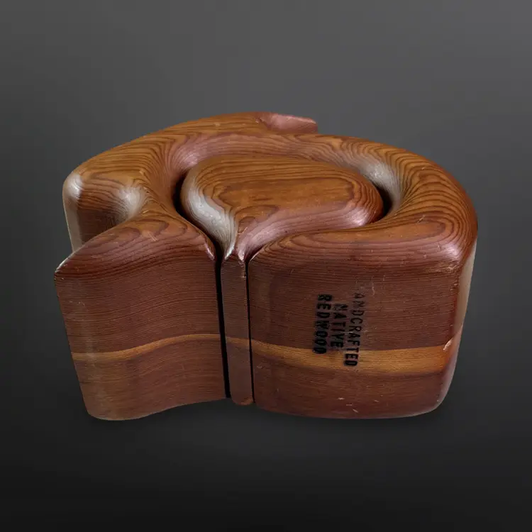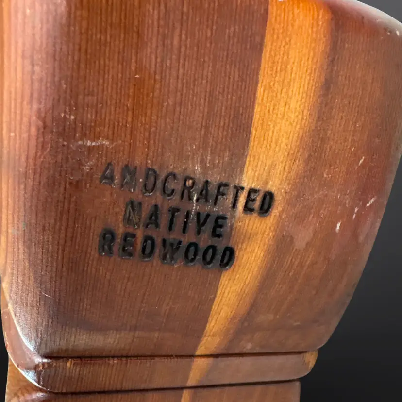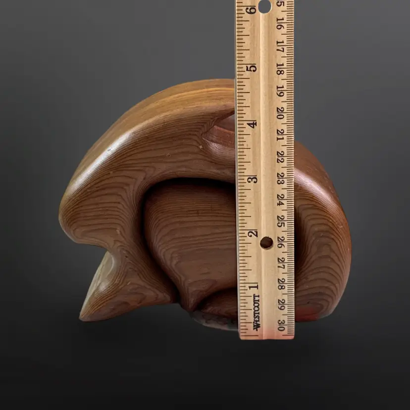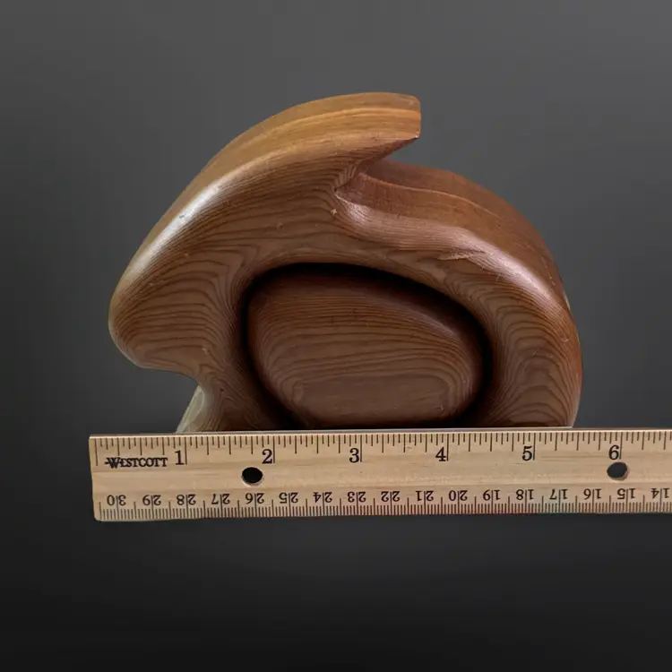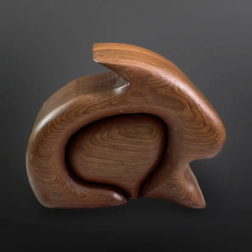 Adorable vintage handcrafted native redwood bunny shaped trinket box with slide out drawer. In good vintage condition with some age related wear; some scuffs/nicks and one discolored spot. Measures approximately 5.5” L x 3” W x 4.5” H