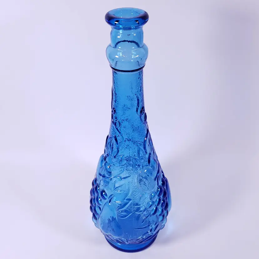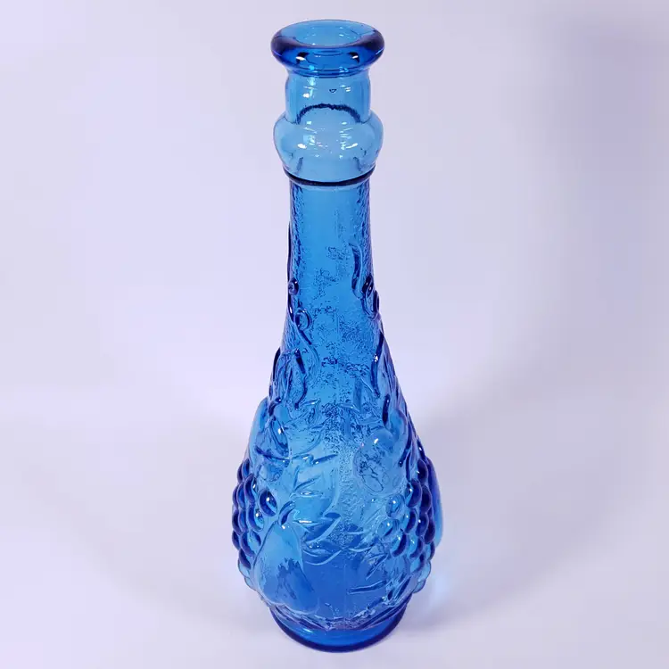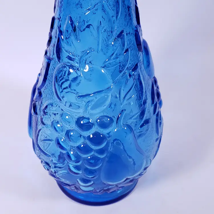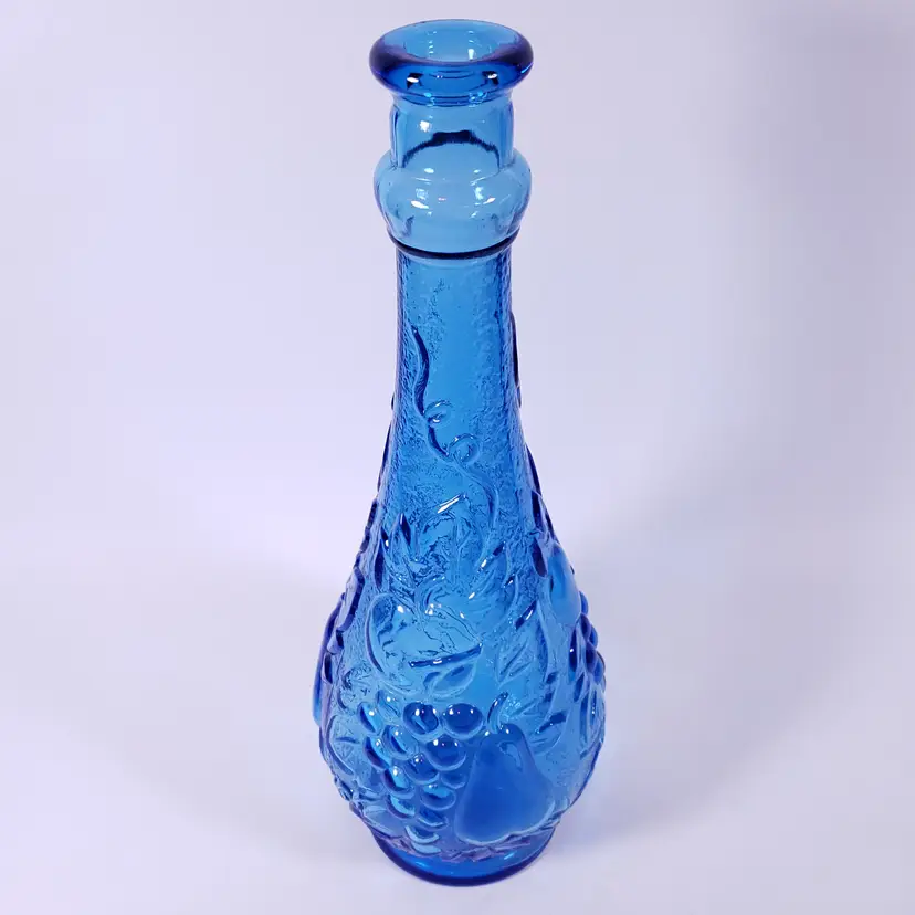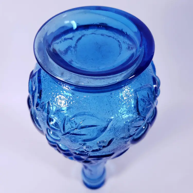Vintage MCM ROSSINI EMPOLI Blue Fruit Glass GENIE BOTTLE DECANTER