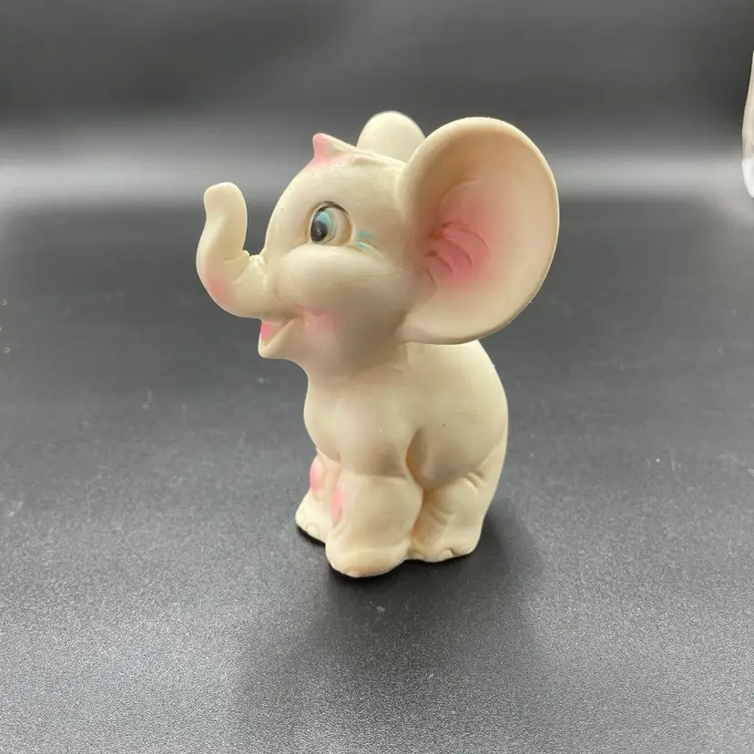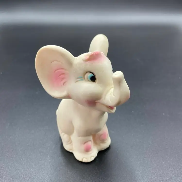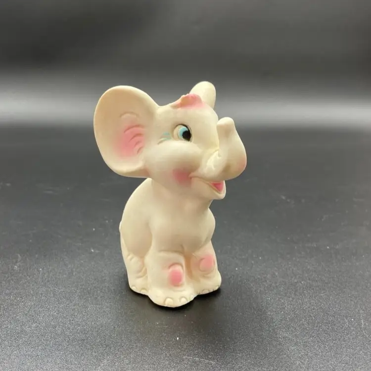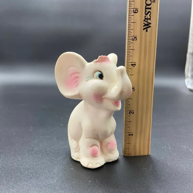 This is vintage mid century non working rubber squeaky toy elephant. Measures approximately 4.25" tall. No cracks. DOES NOT SQUEAK!!