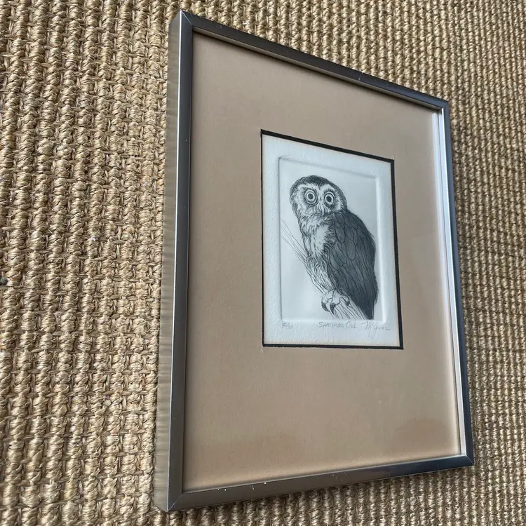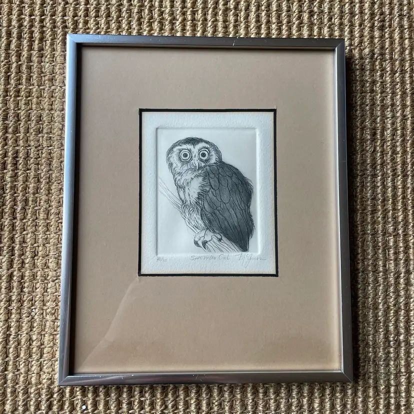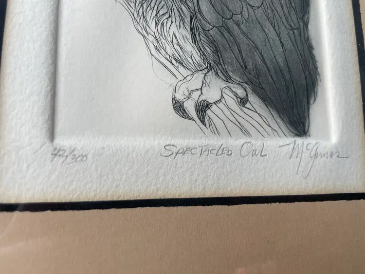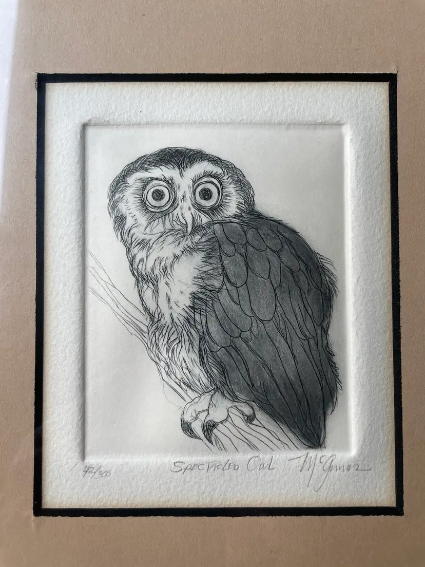 These lithographs are dated in the 60s, per a couple of galleries and small museums. McGinnis drew all sorts of owls — this one was given to me by a great aunt; sadly my collection of lil woodland creatures to hang on my walls has outgrown my actual number of walls.
