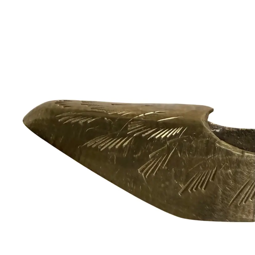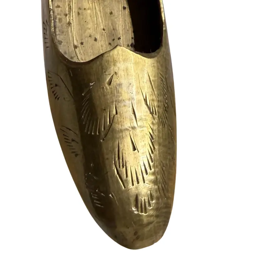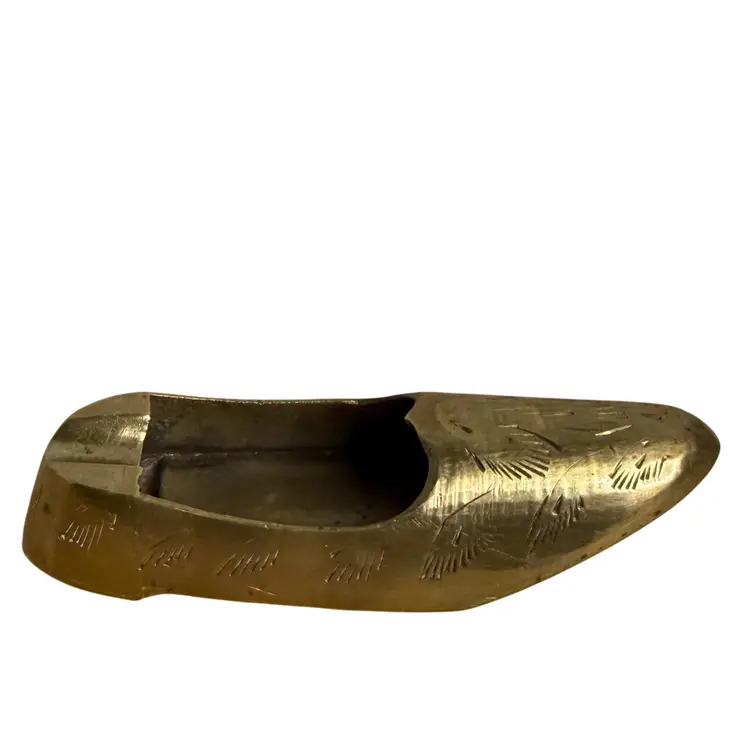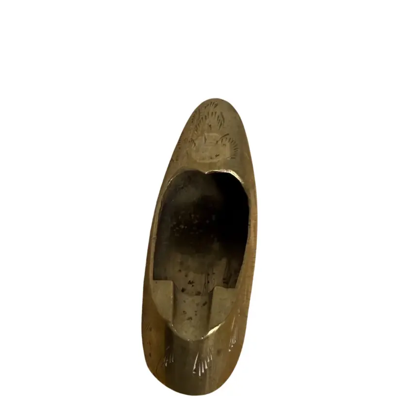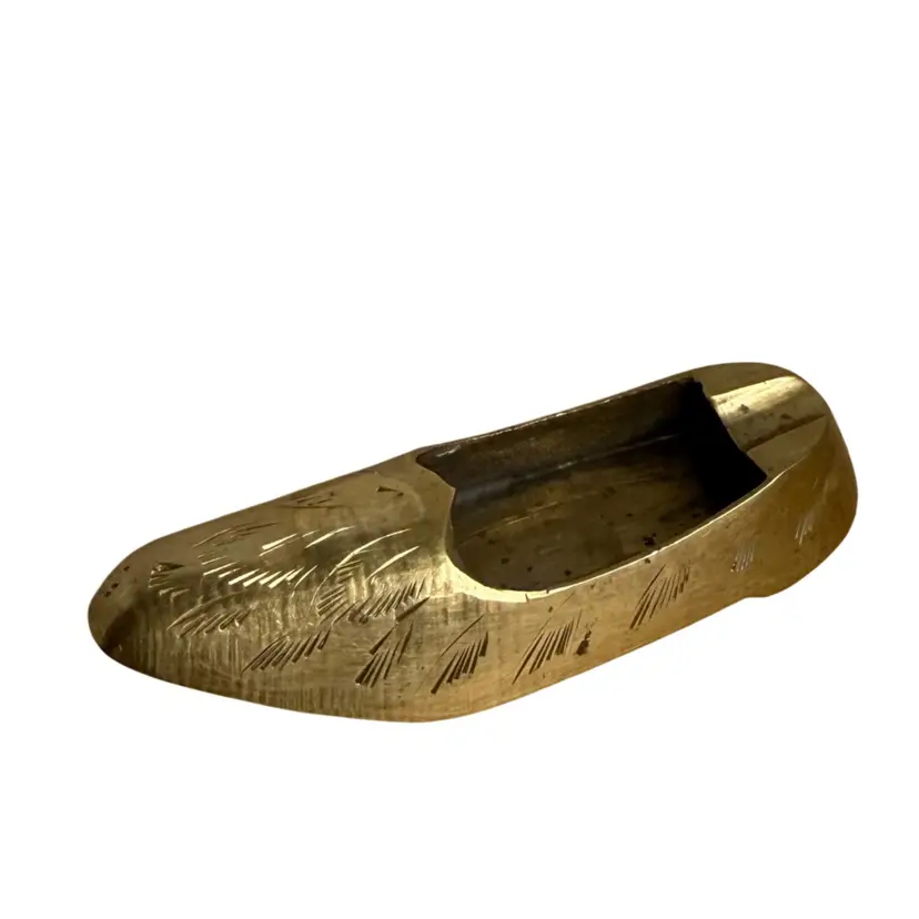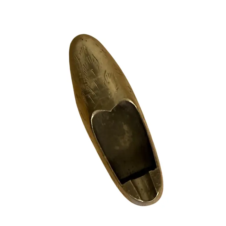 Vintage MCM Solid Brass Metal Miniature Hand Etched Ashtray Shoe India.