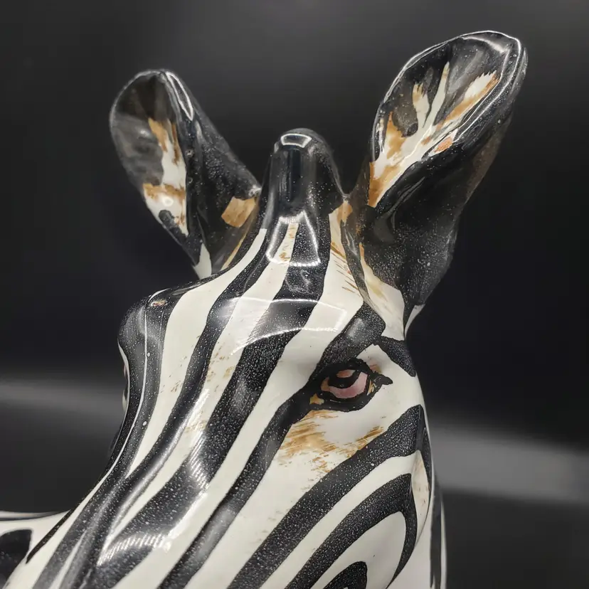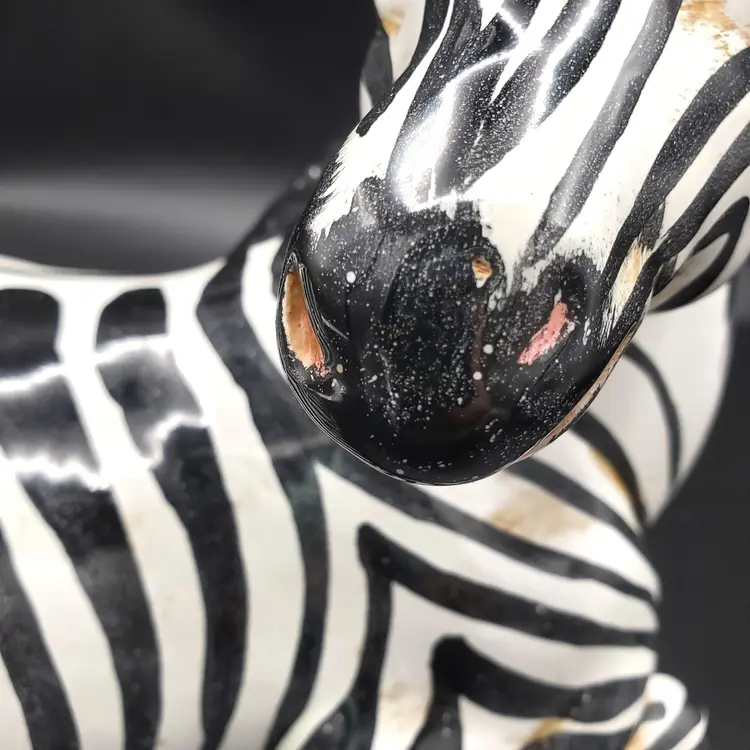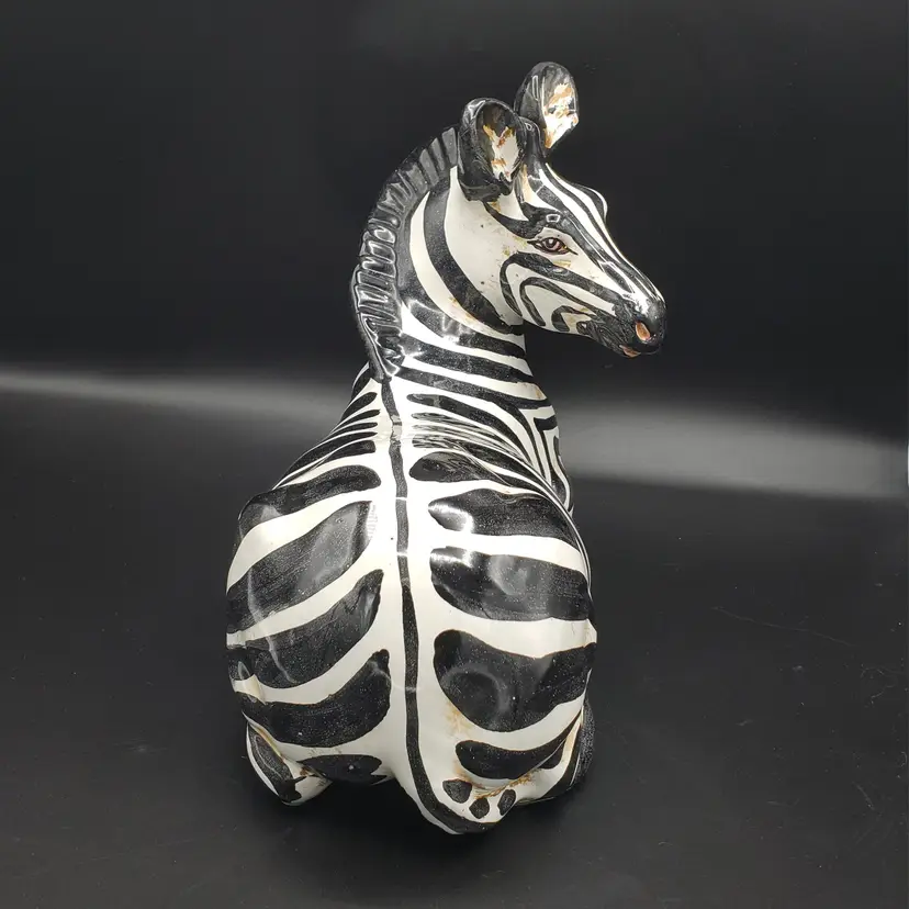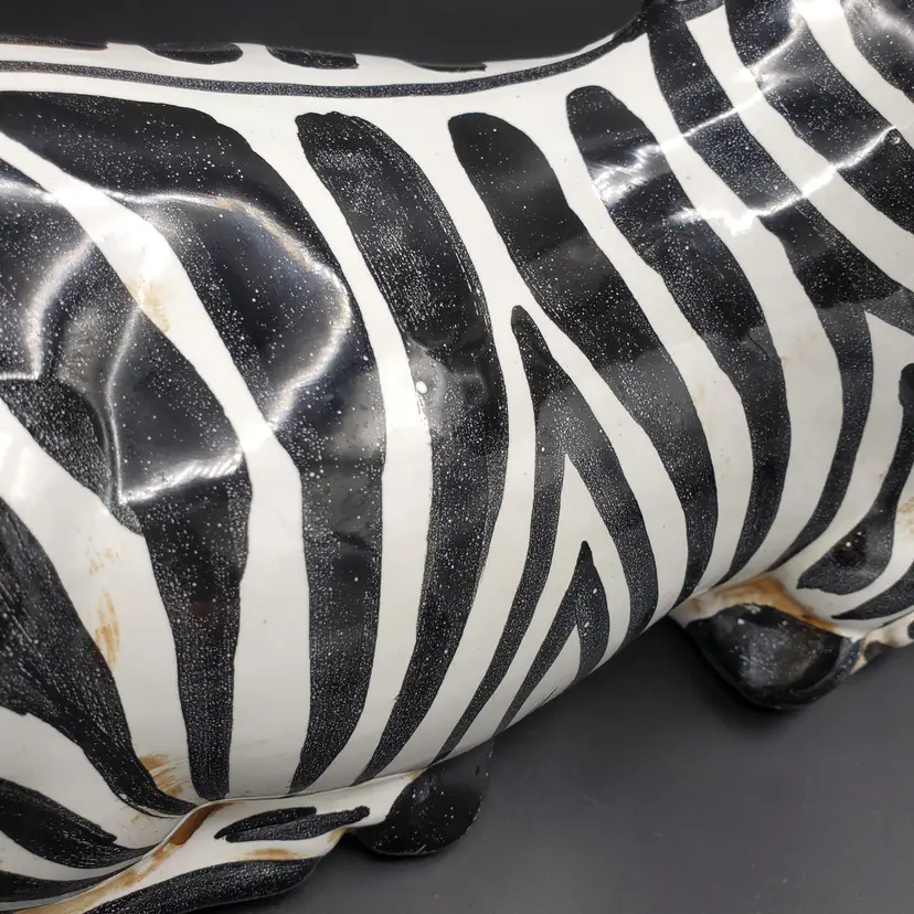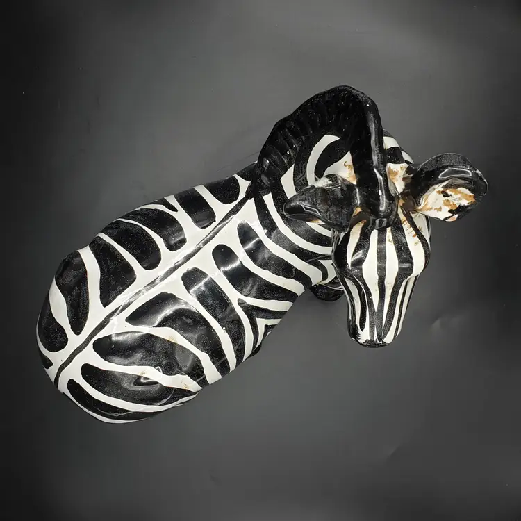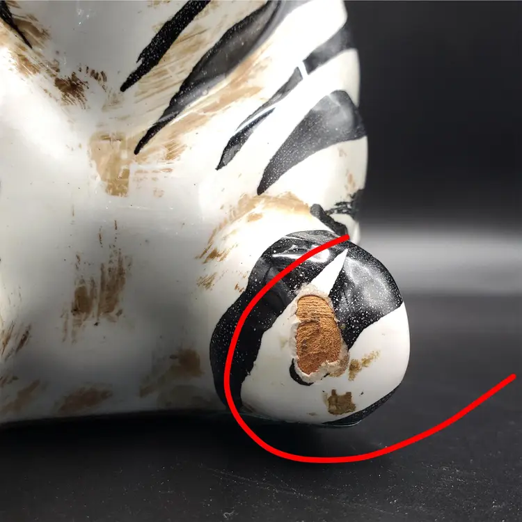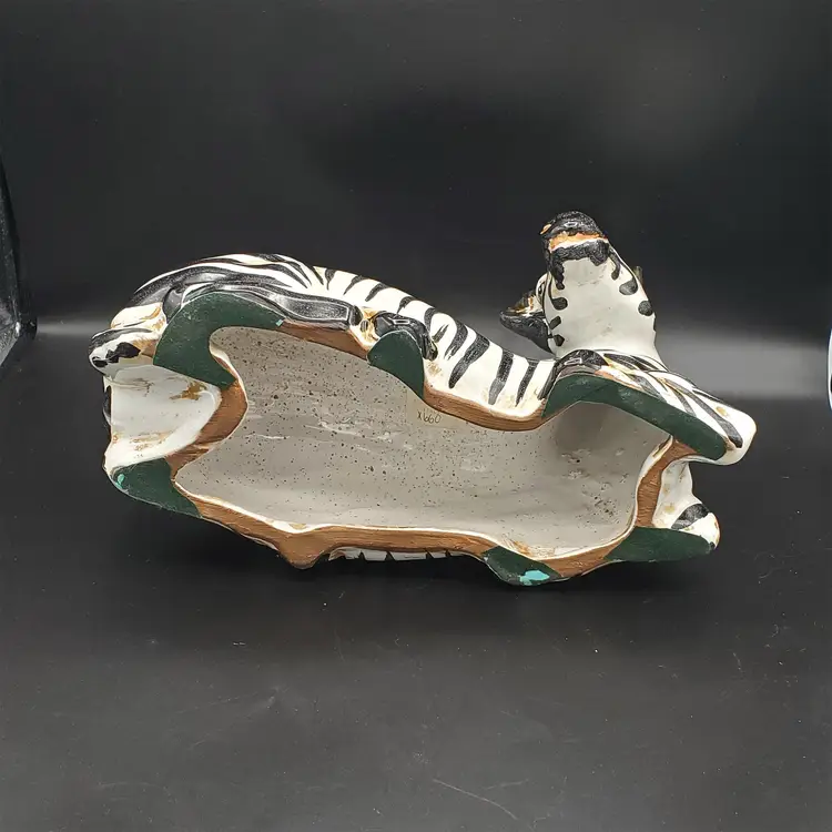 Measures 12" long x 9" high Two chips in the glaze, one on the ear, one on the leg. No other damage to this figural pottery piece. Thanks for looking!