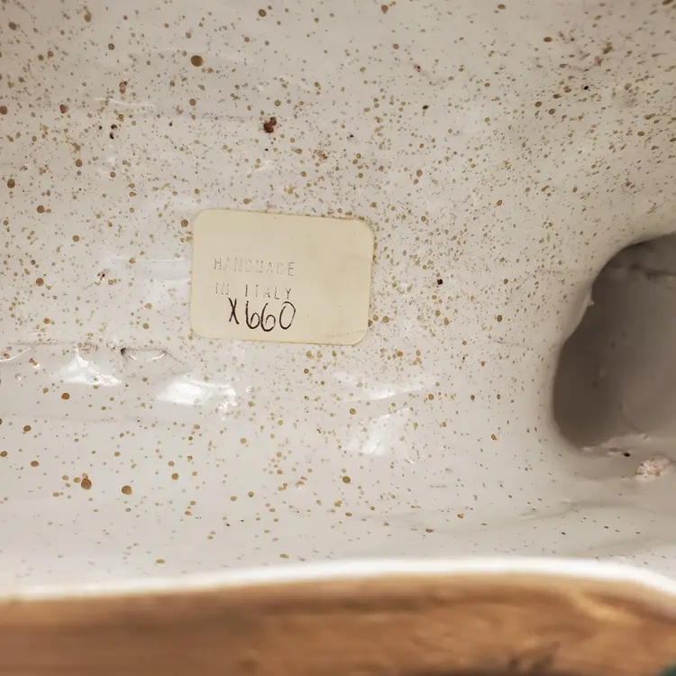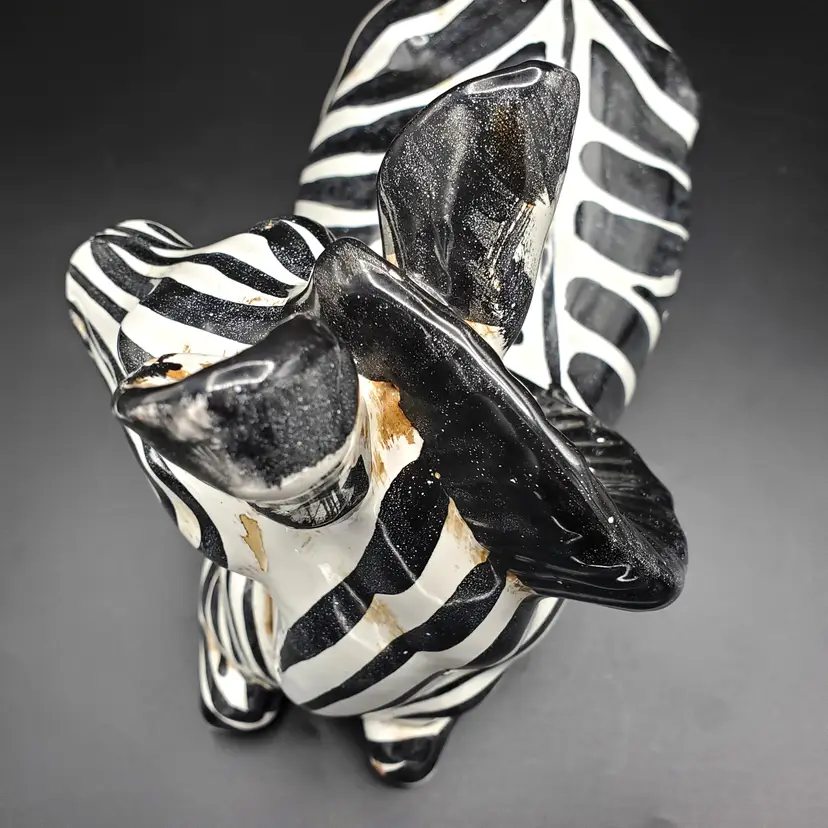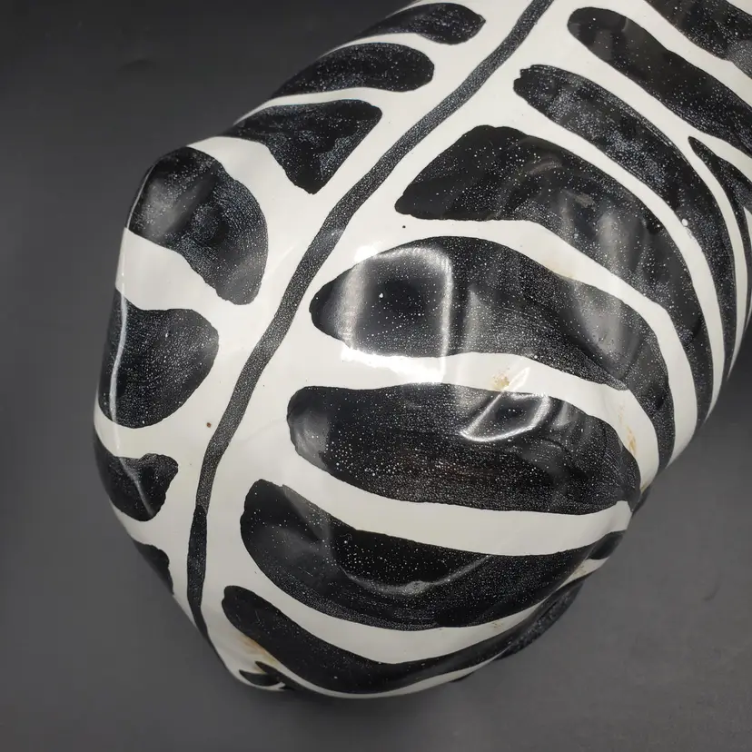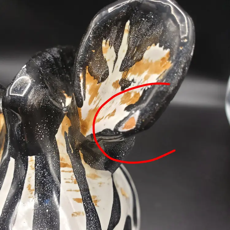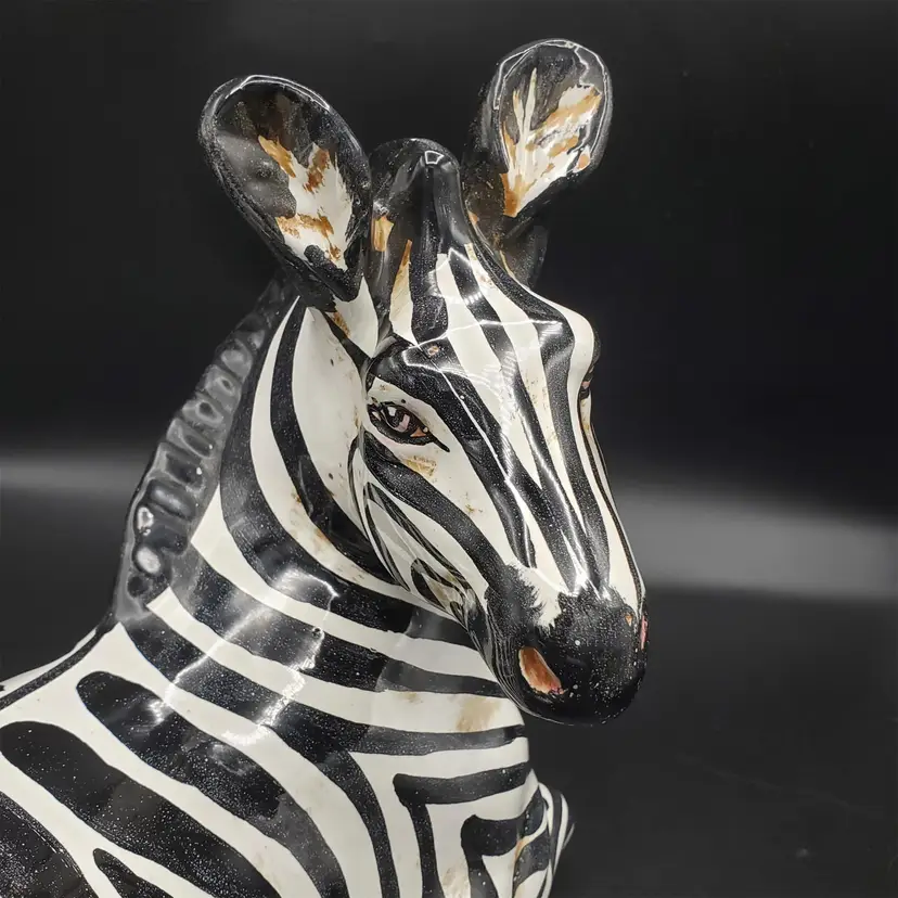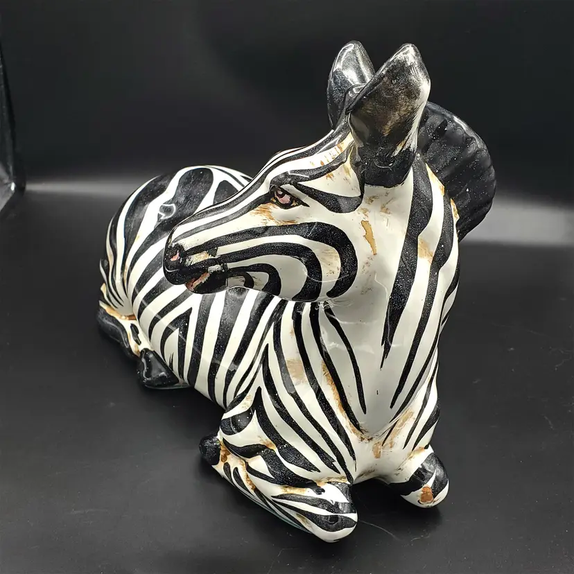 Measures 12" long x 9" high Two chips in the glaze, one on the ear, one on the leg. No other damage to this figural pottery piece. Thanks for looking!