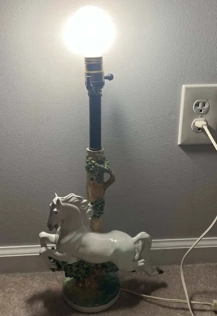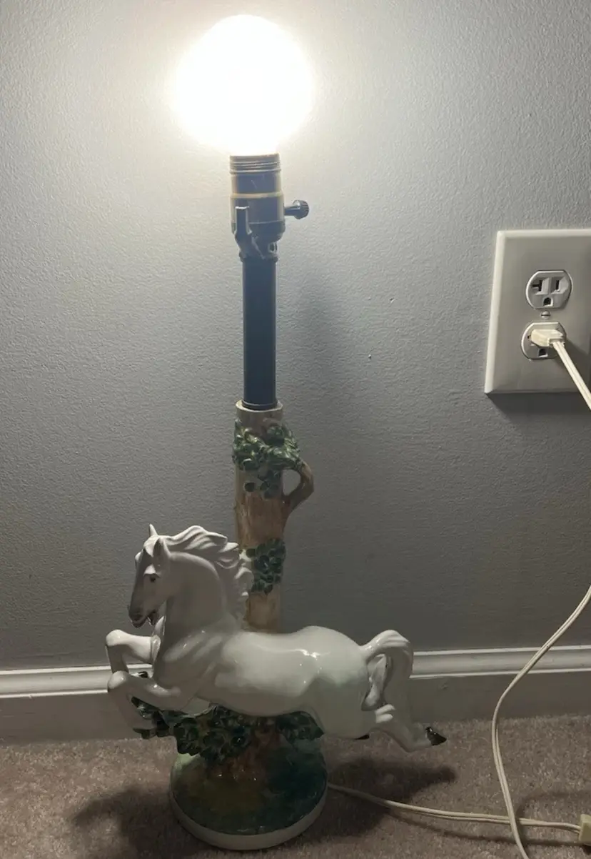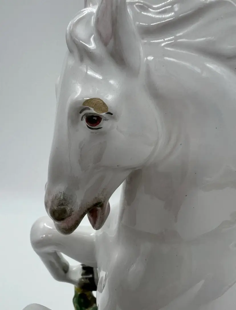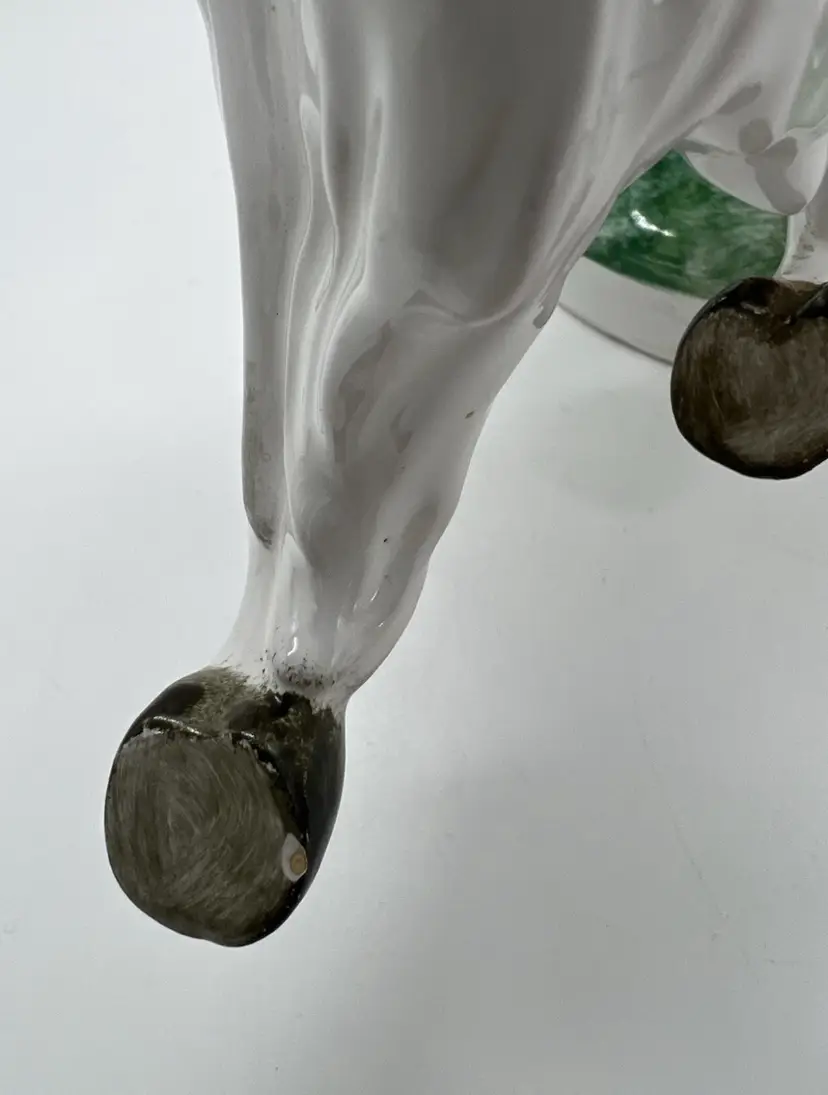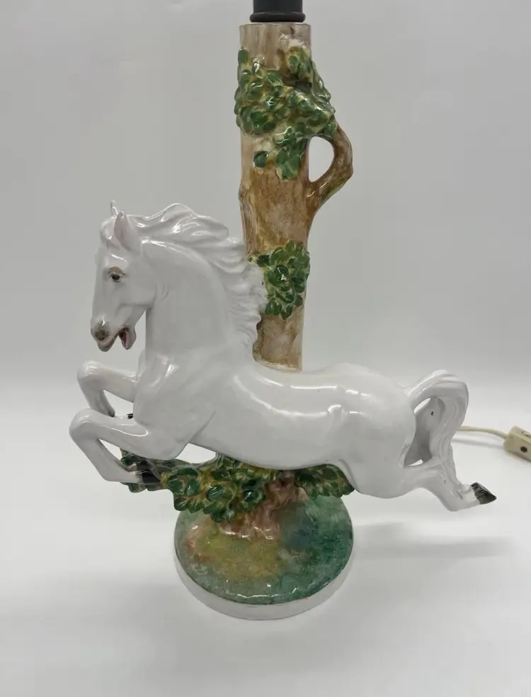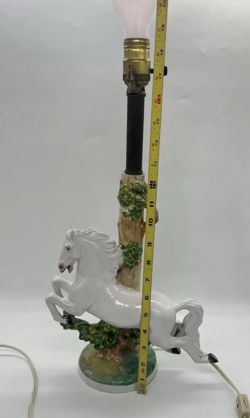 Add a touch of Italian craftsmanship to your home with this stunning vintage MCM Ugo Zaccagnini table lamp. The lamp features a figural design of a white horse, with intricate details that showcase the exquisite artistry of Italian pottery. The lamp stands at 18 1/2" in height and is an original piece from Italy.