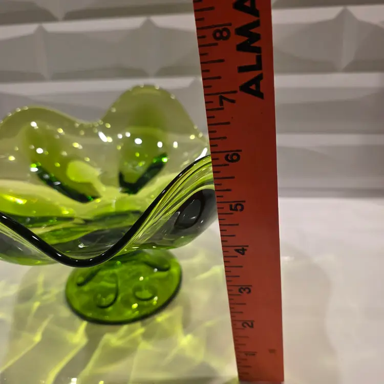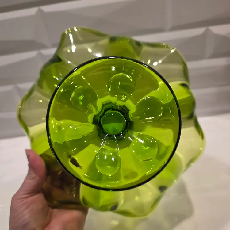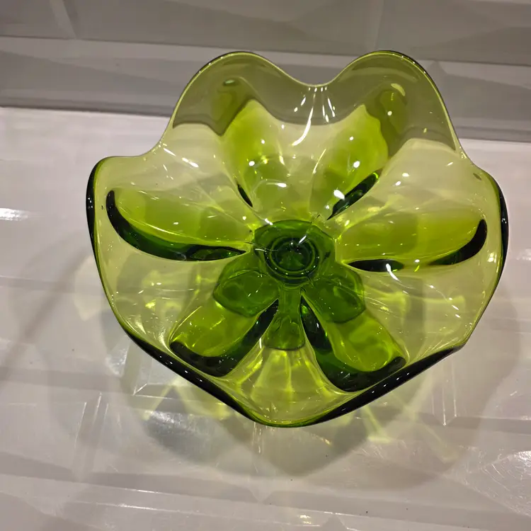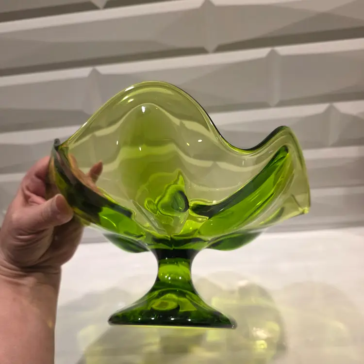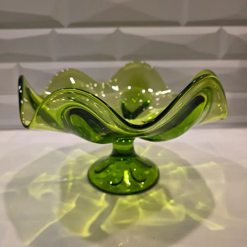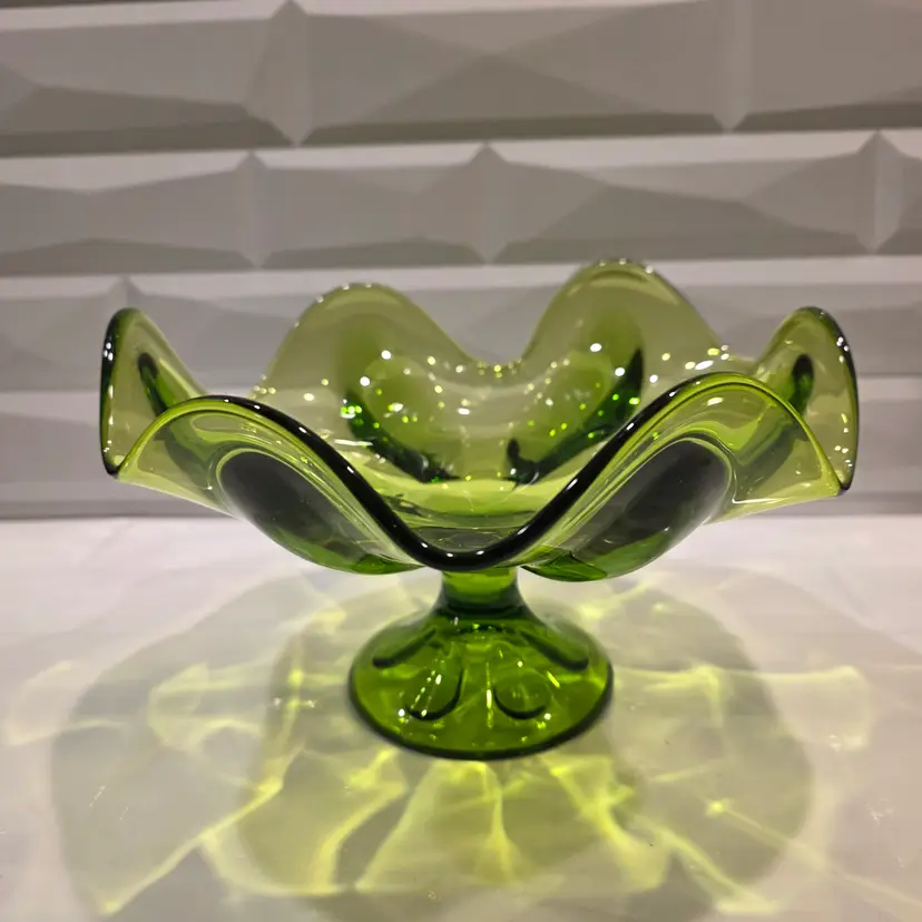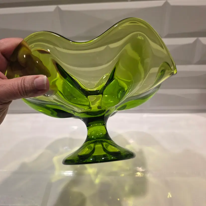 Vintage MCM Viking Glass Large 9.” Avo Green Epic 6 Petal Footed Compote 1960s Good condition no chips or cracks Please review photos