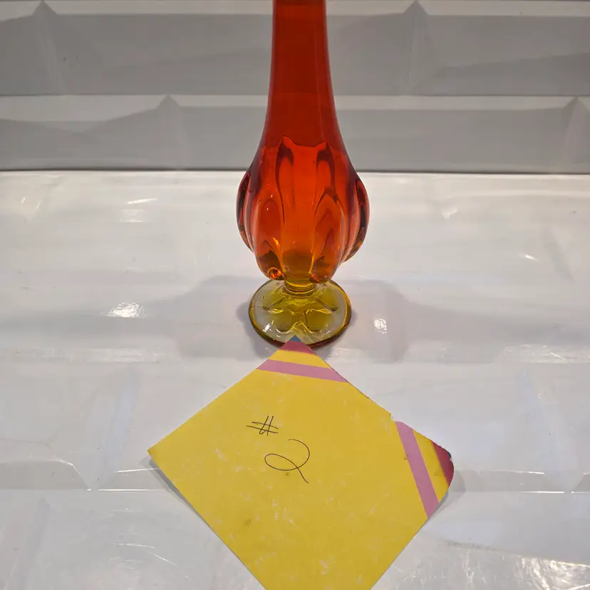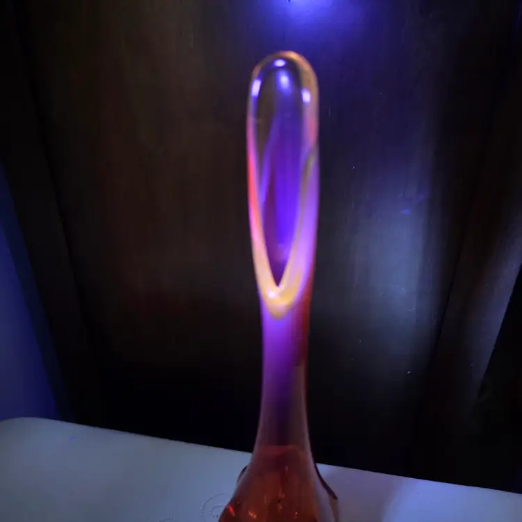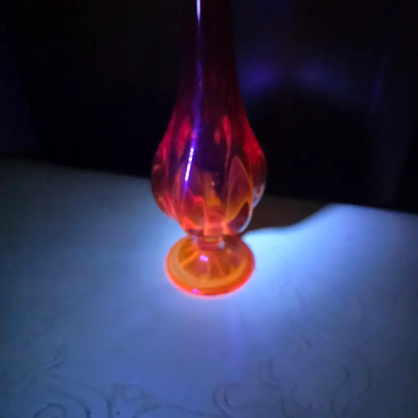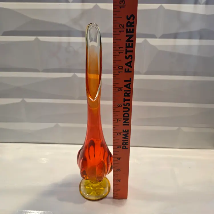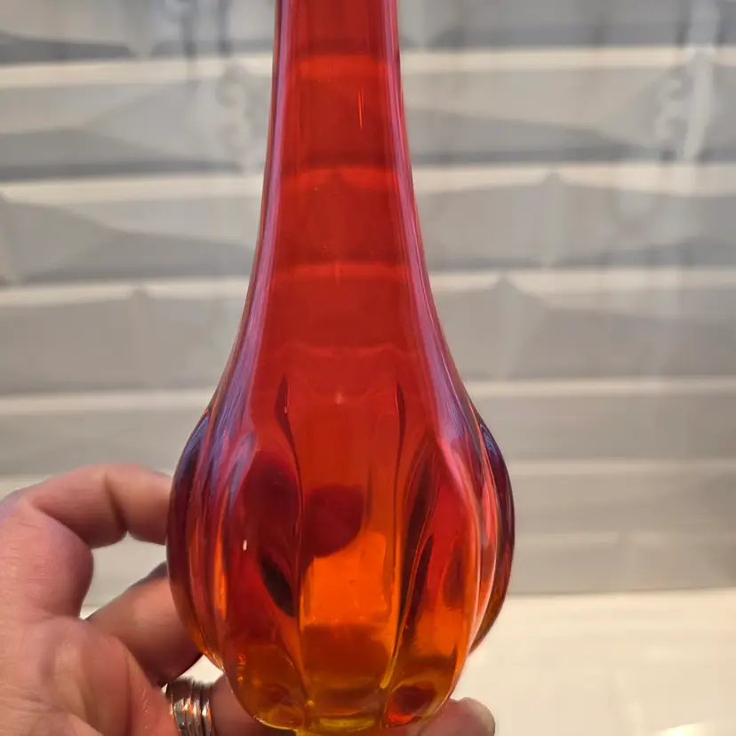 Vintage MCM Viking Persimmon Amberina Swung Vase 12.5 Good condition no chips or cracks Please review photos Glows under UV light