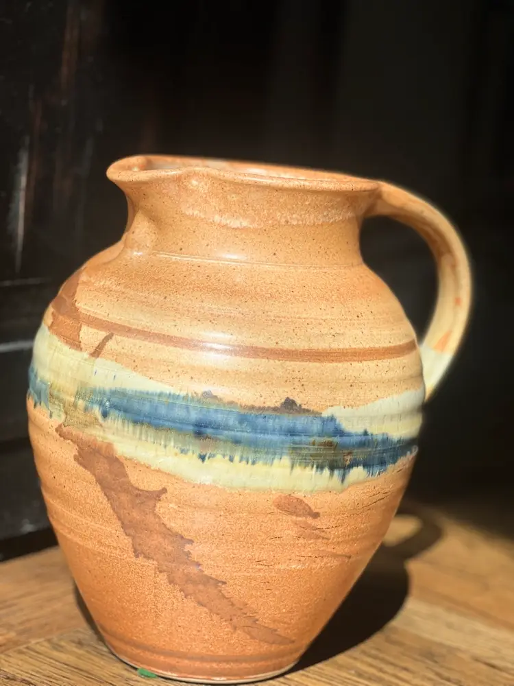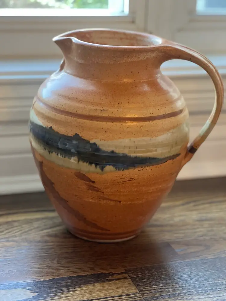 This size pitcher is especially hard to find for Mcqueeny pottery. It is approximately 10.5 inches tall. It’s in amazing condition. No chips or cracks. It’s a heavy piece. If there’s any shipping left over, I will gladly refund Comps out over $100.