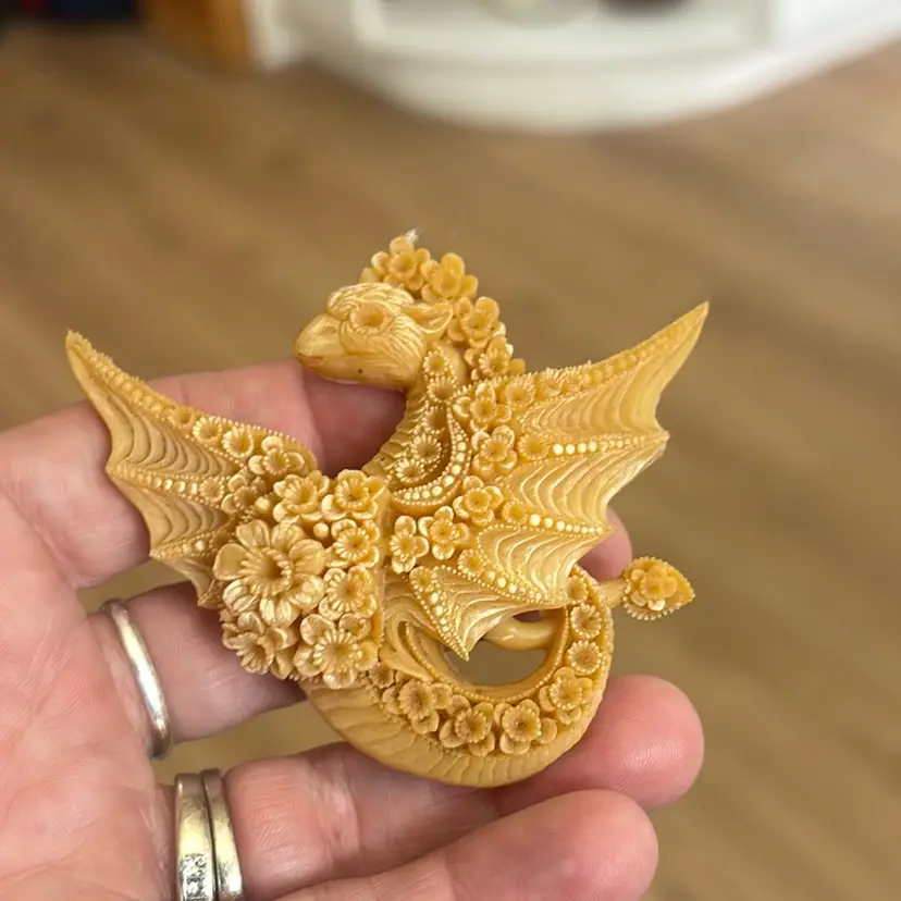 Vintage Meerschaum Clay Carved Dragon Floral Handmade 2.5” Jewelry Make Or Use As Decor