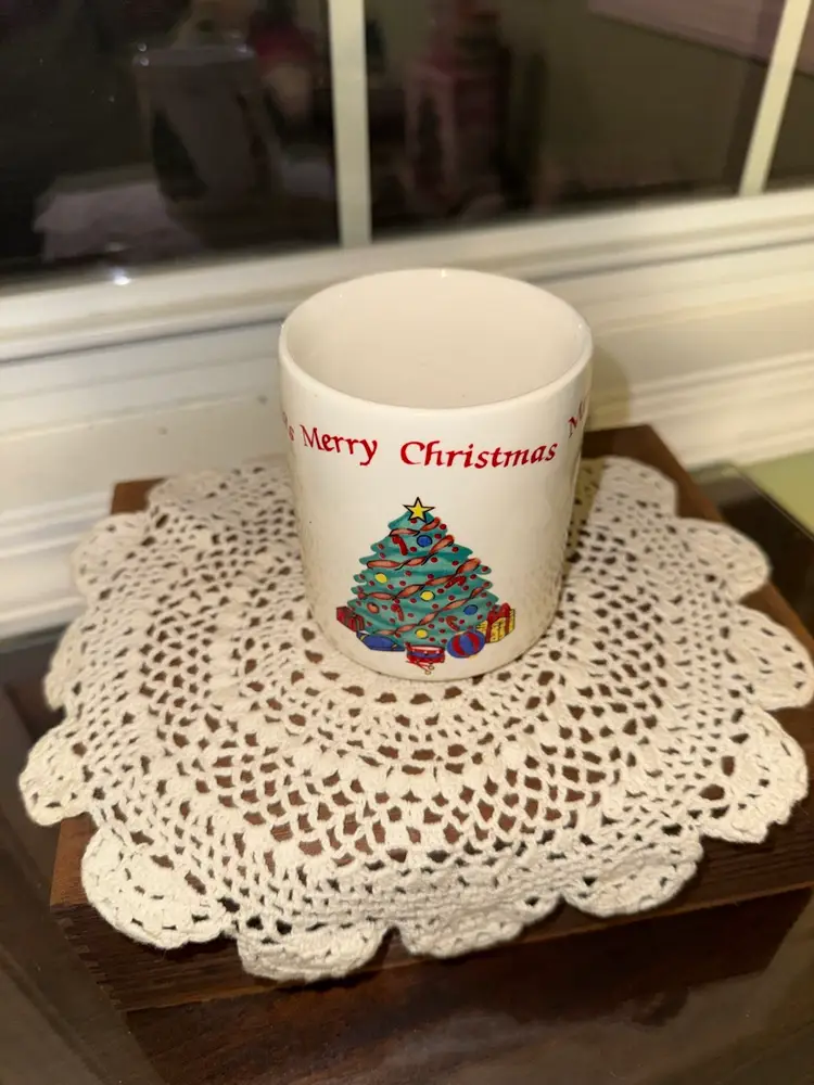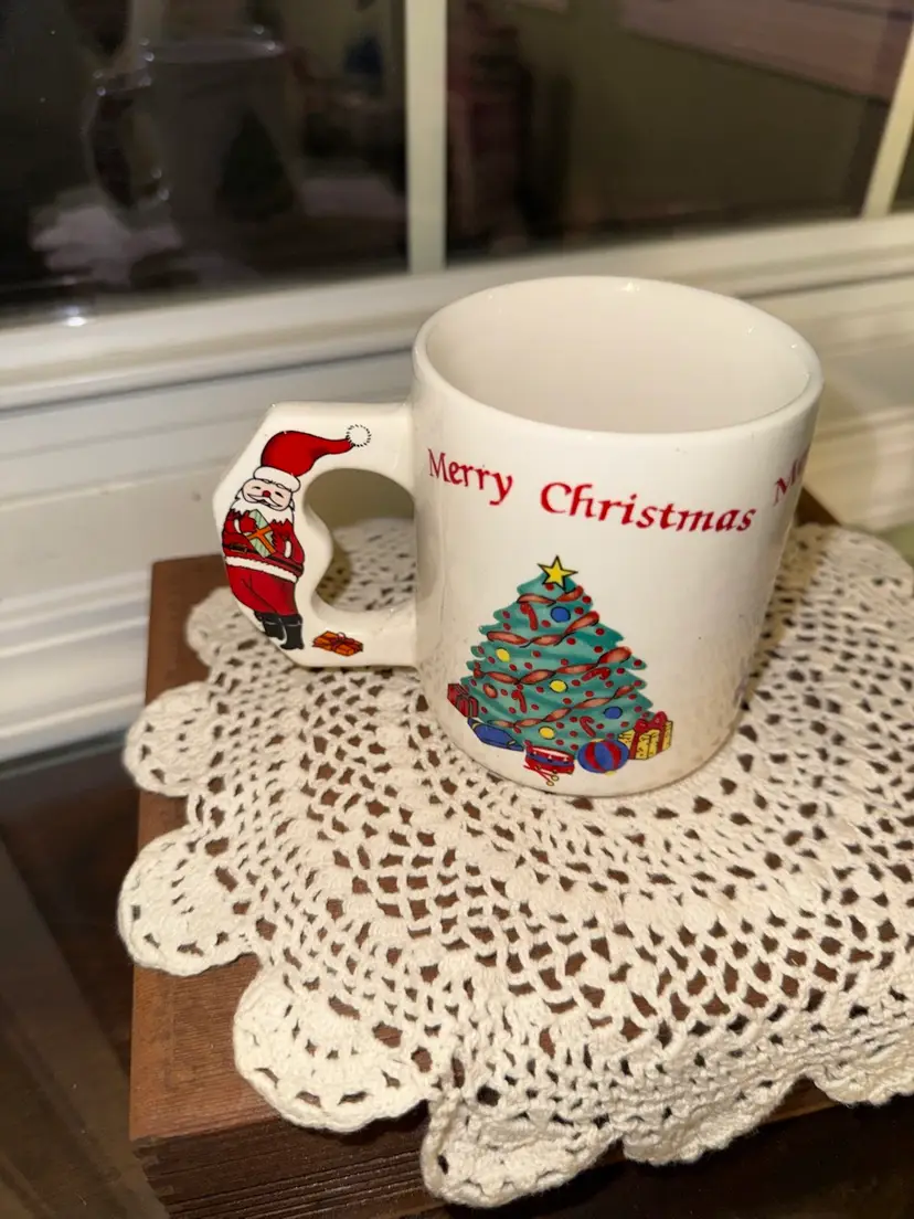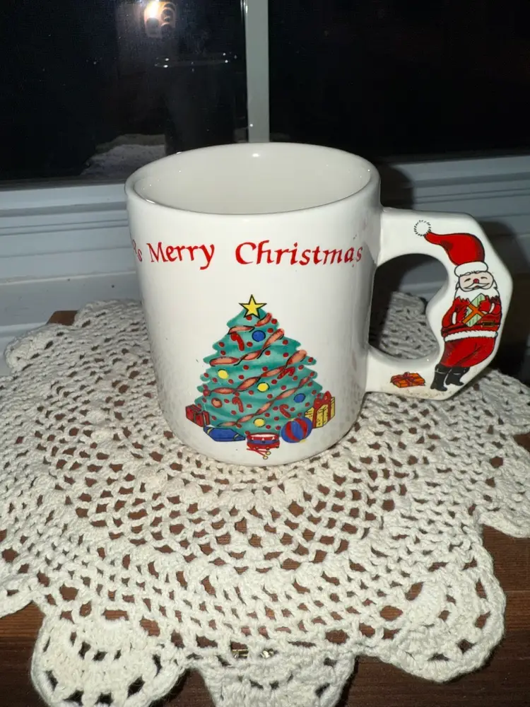 The Vintage Merry Christmas Coffee Mug features a festive Christmas tree pattern, perfect for holiday gatherings or morning coffee. This collectible mug is sure to bring a touch of nostalgic charm to your Christmas celebrations, featuring classic Santa Claus imagery in a vintage style. With its sturdy construction and Christmas-themed design, this mug is a must-have for any Christmas enthusiast looking to add a retro touch to their holiday traditions.