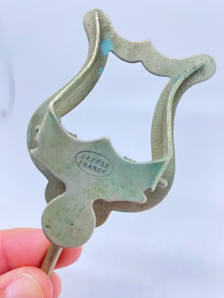 Has some discoloration. Marked Depose France on the back. Unscrews to allow placement on instrument.
