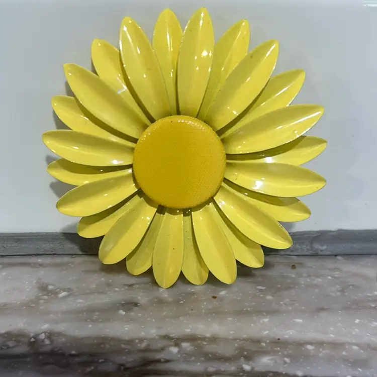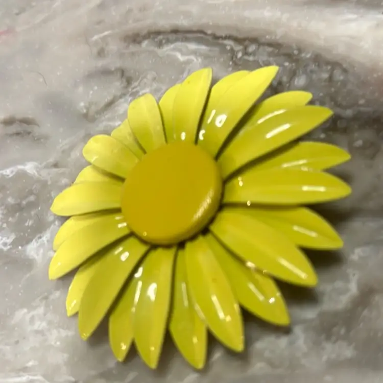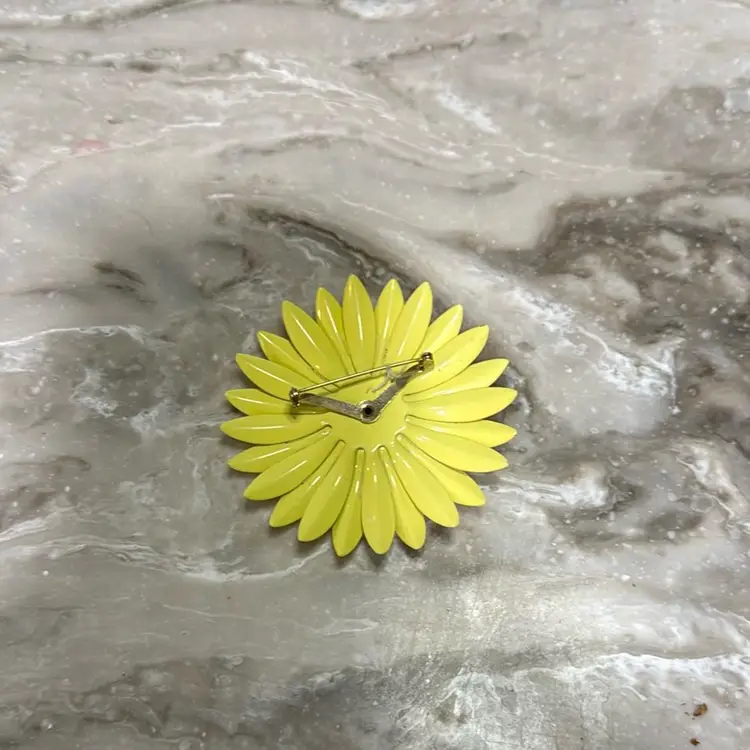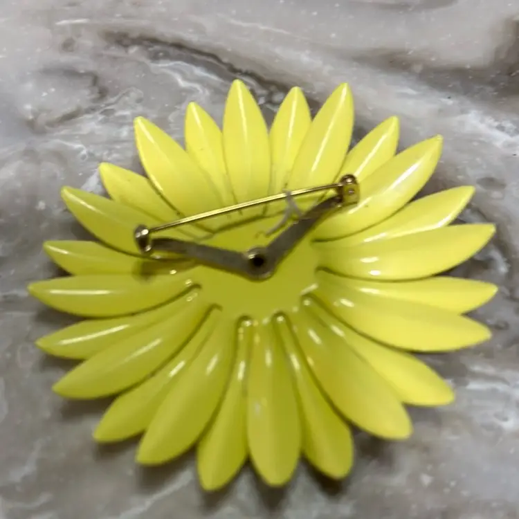 Very nice vintage yellow daisy brooch. It’s about 3.5” across.