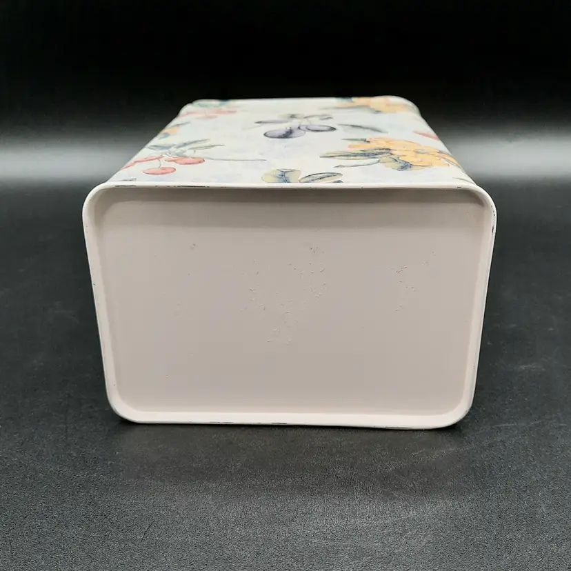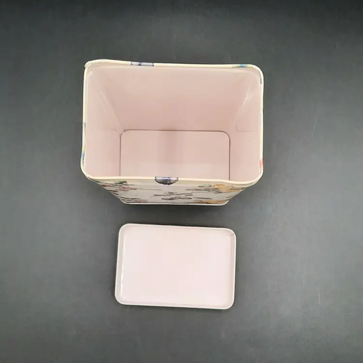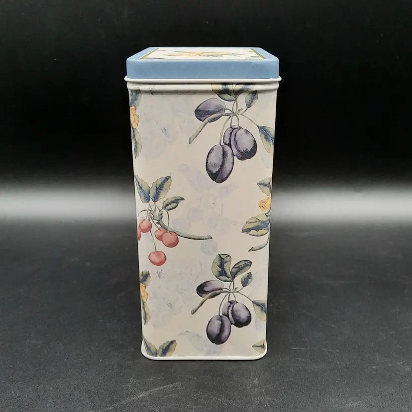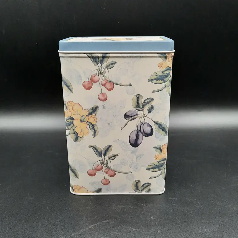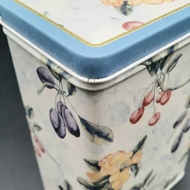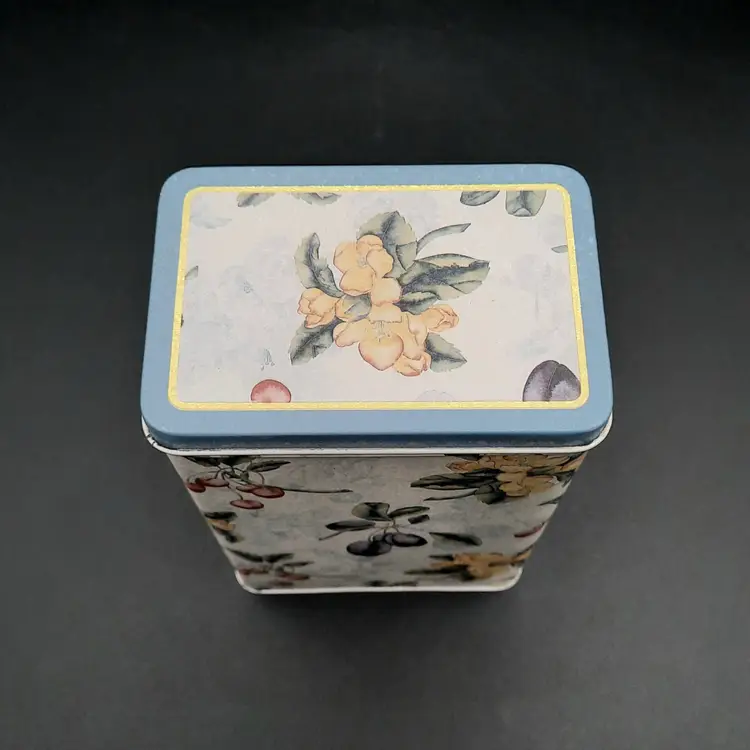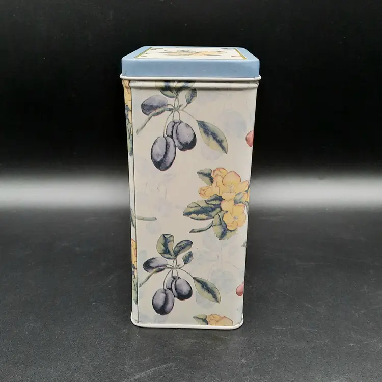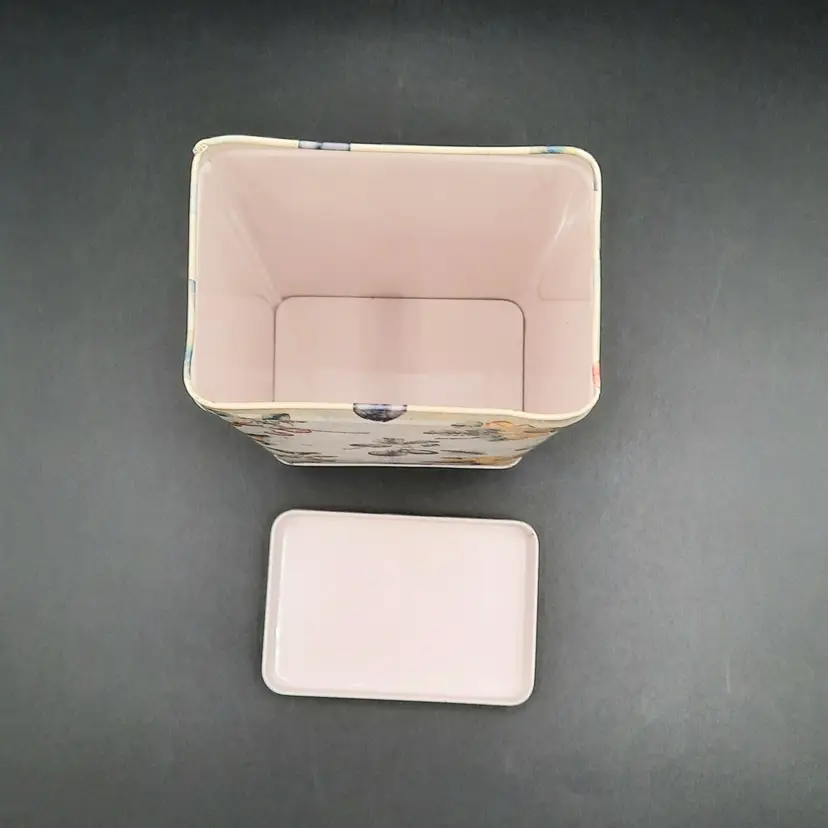 Sweet little tin in excellent condition with a tiny bit of wear on one corner, 6 1/2"H x 4 1/4"L x 2 3/4"W