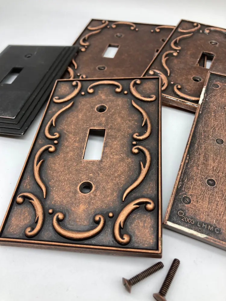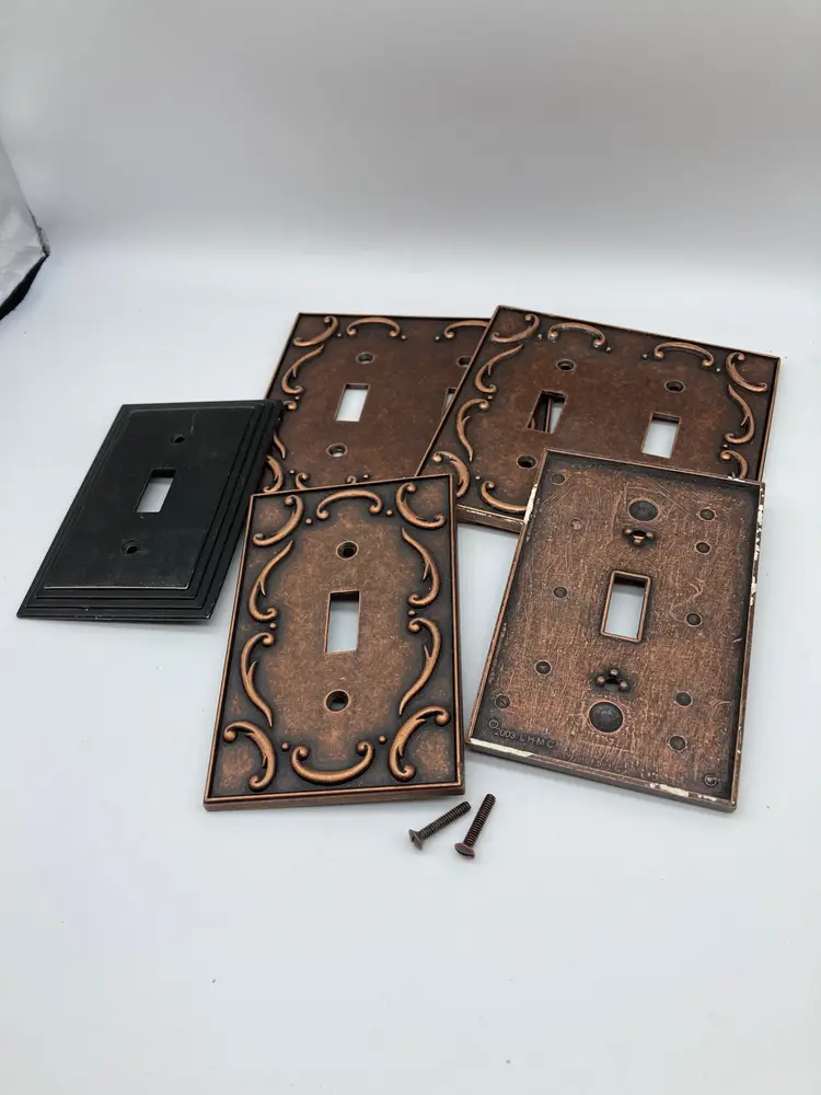 Vintage Metal Light Switch Covers - 2 Large 3 Small