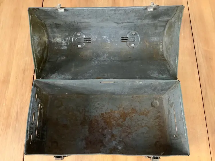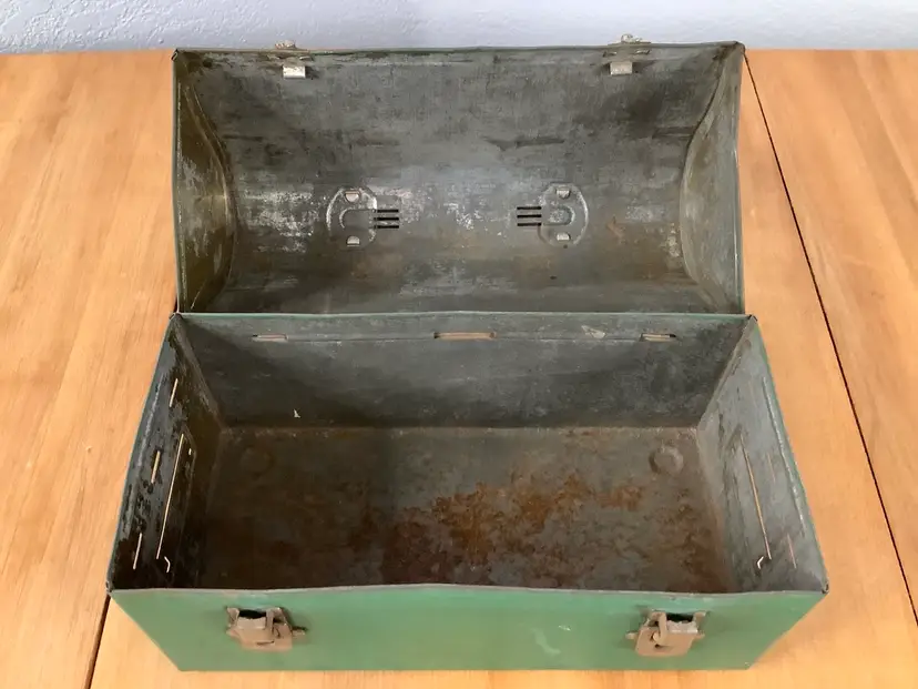 Measures about 9”x4.25”x6.25”. Has rust and dents. “Don” is inscribed on both sides.