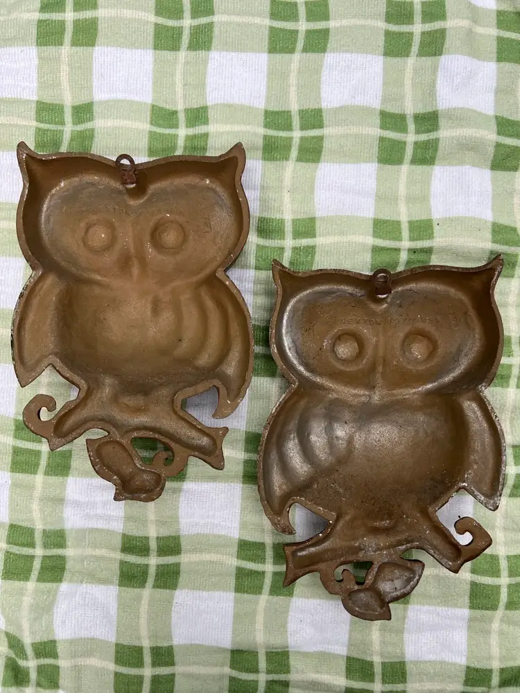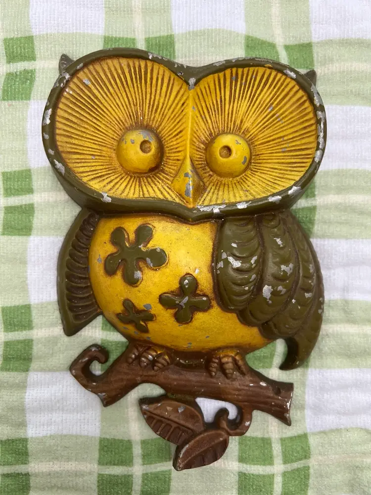 π¦ Super cute set of 1970s metal owls π¦ Made by Sexton π¦ These guys do have flea bites but a little paint could easily fix that or leave them as is! π¦ Smoke free home π¦ Measure approximately 8x6β