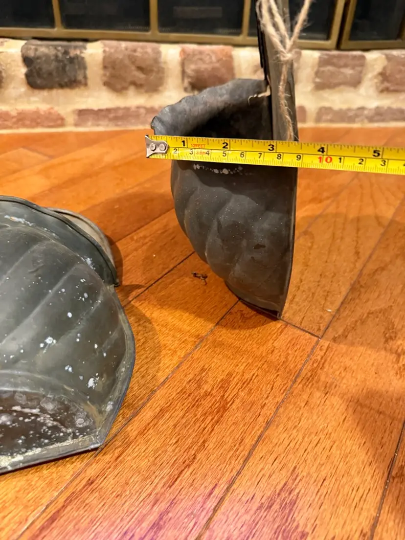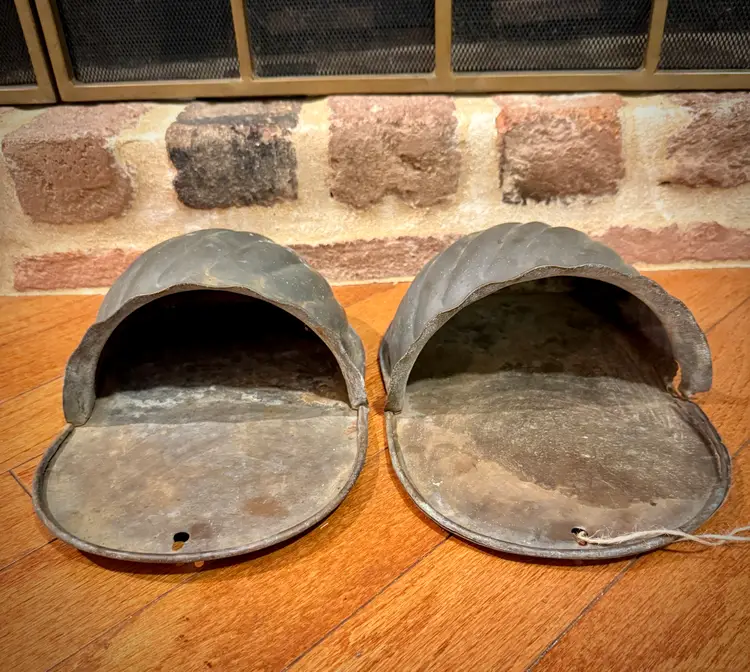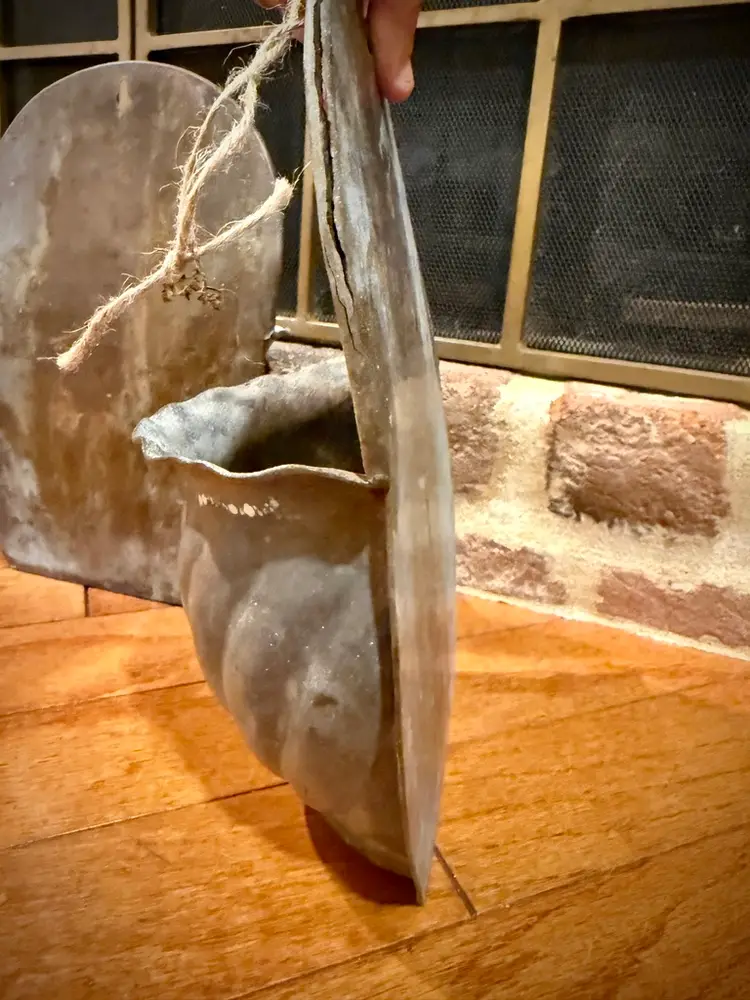 Add timeless farmhouse charm to your space with this pair of vintage galvanized metal wall pockets. Each piece features a beautifully curved, ribbed basin with a scalloped edge — perfect for holding dried flowers, greenery, utensils, or mail. Their aged patina and weathered surface give them an authentic rustic character that works beautifully in modern farmhouse, cottagecore, or industrial-style homes.