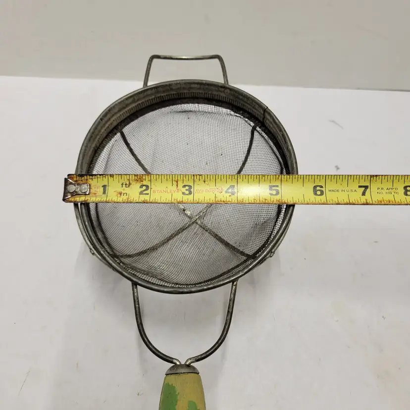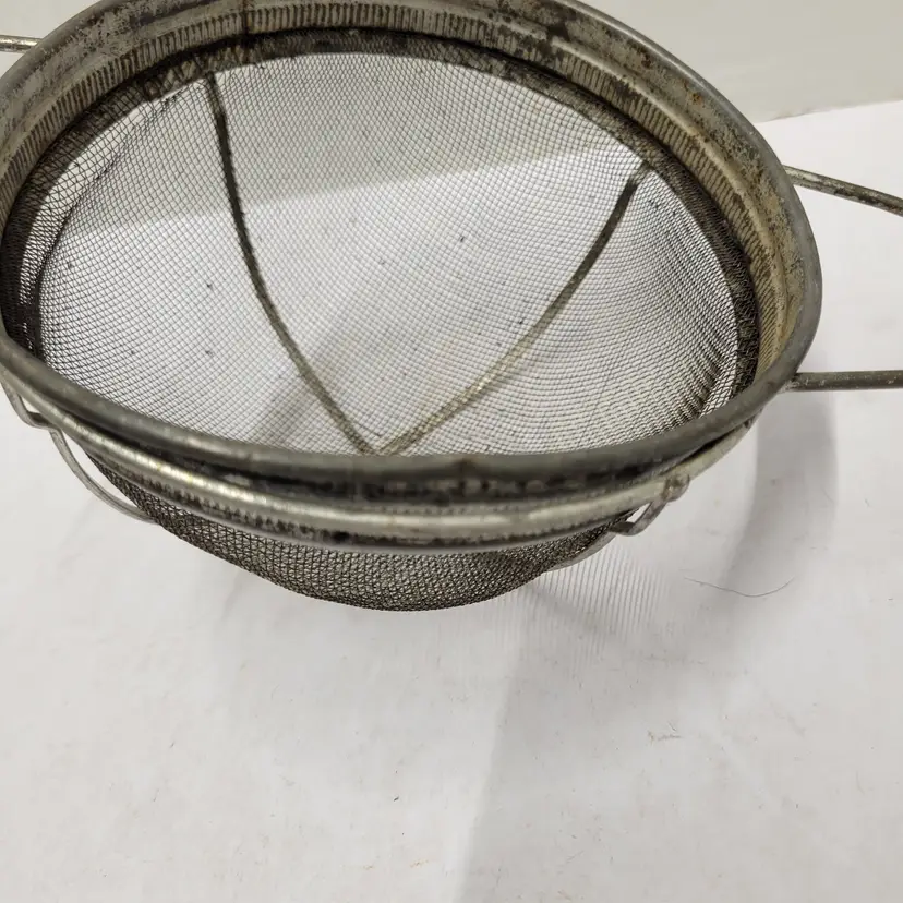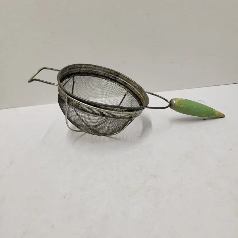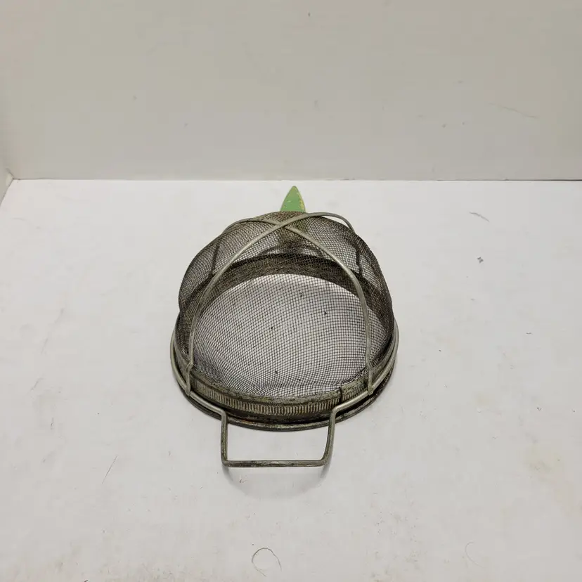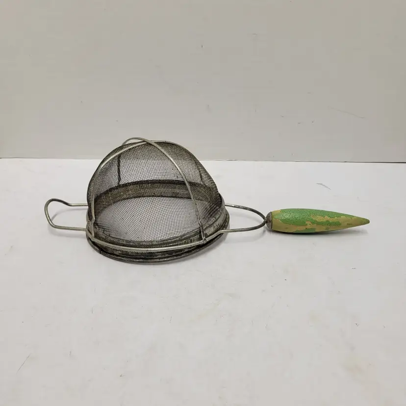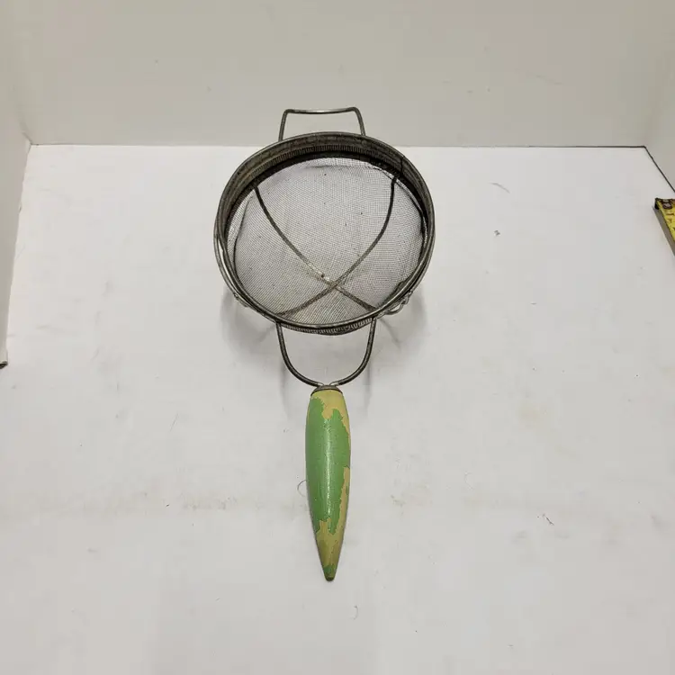 Vintage Metal Wire Mesh Sieve Strainer Basket Collander Cottagecore Green Round