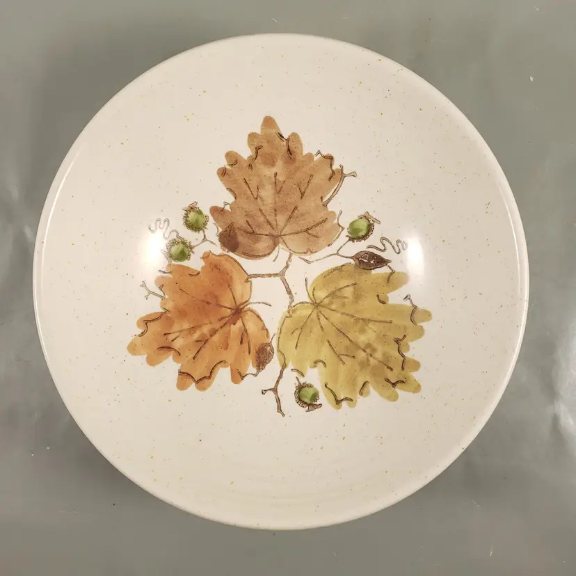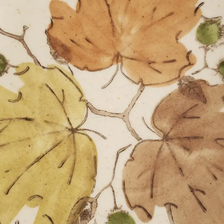 • Stenciled brown, burnt orange & green autumn leaf & acorn design
