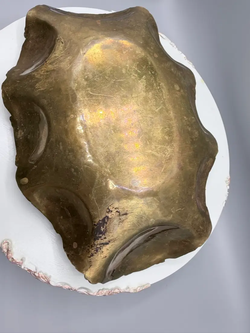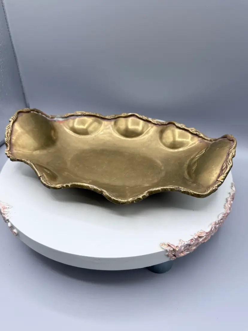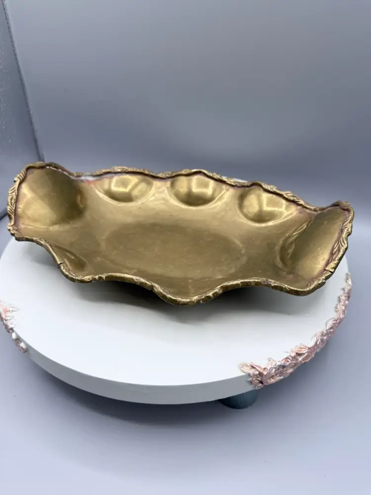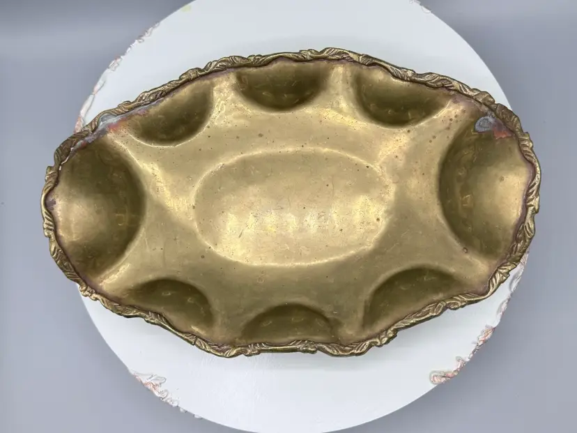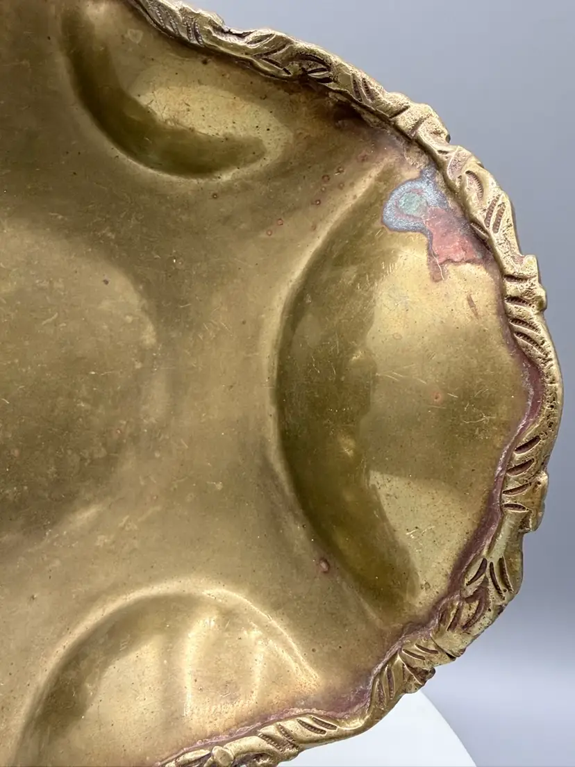 Ornate, hand-worked edges. Good vintage condition with age-appropriate surface wear and patina. No cracks or structural issue.