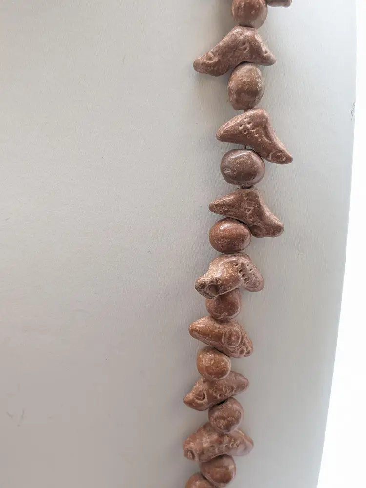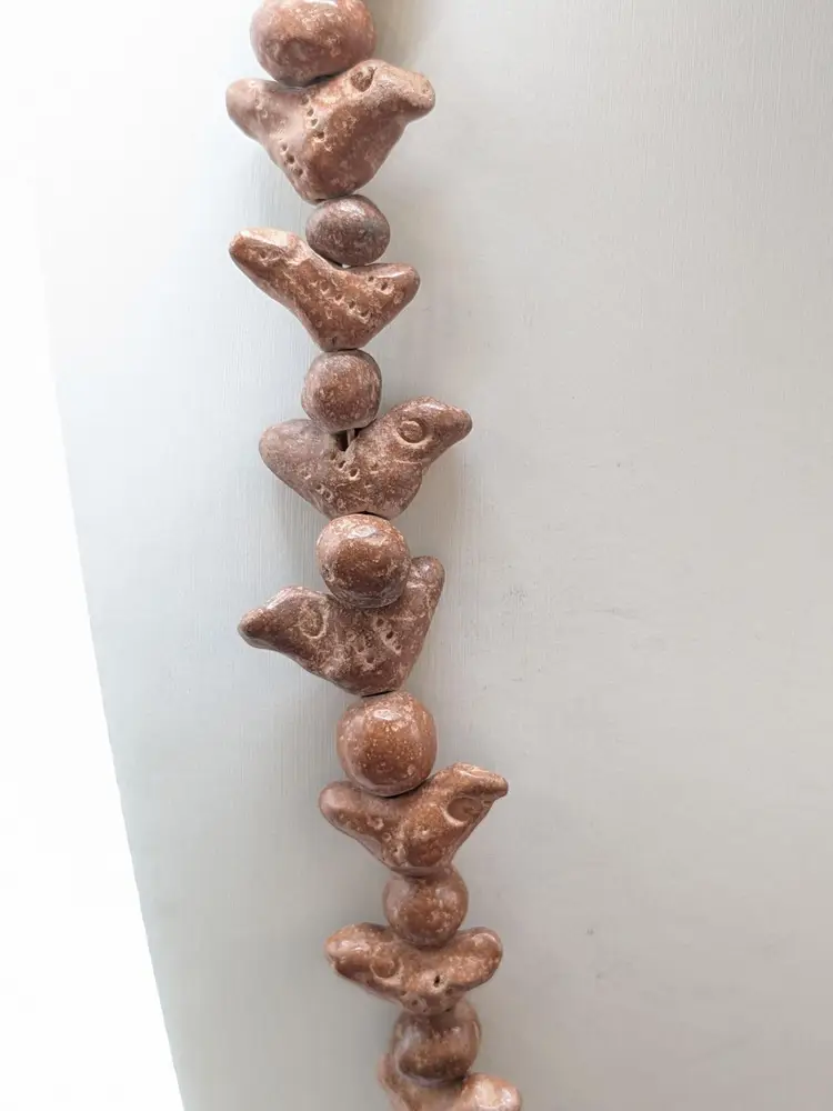 Good condition. Brown in colour and made of clay. 39 birds in total. Made in Mexico. Measures 26".