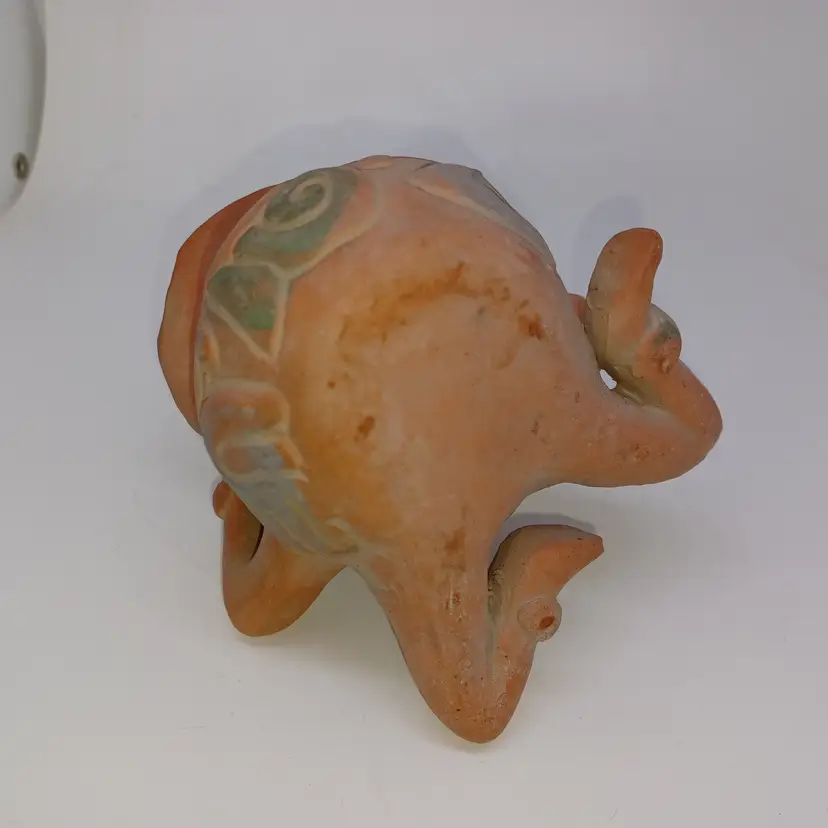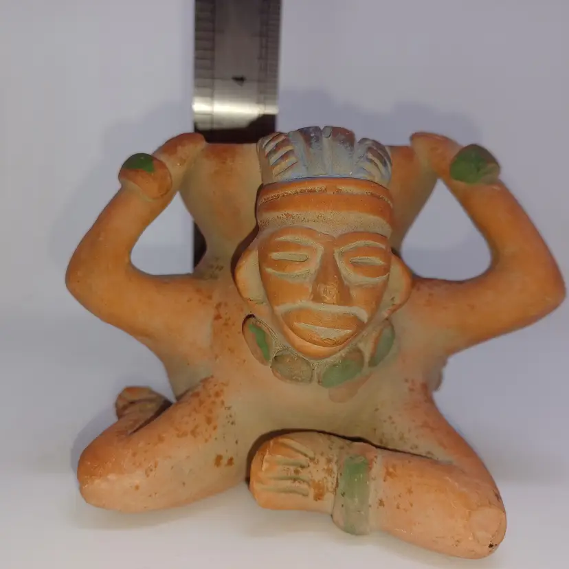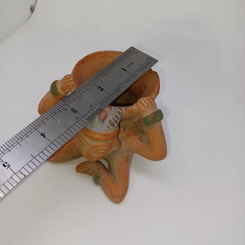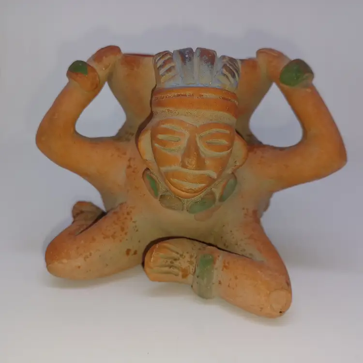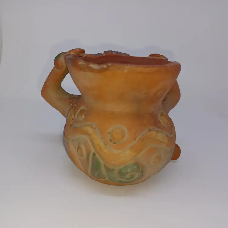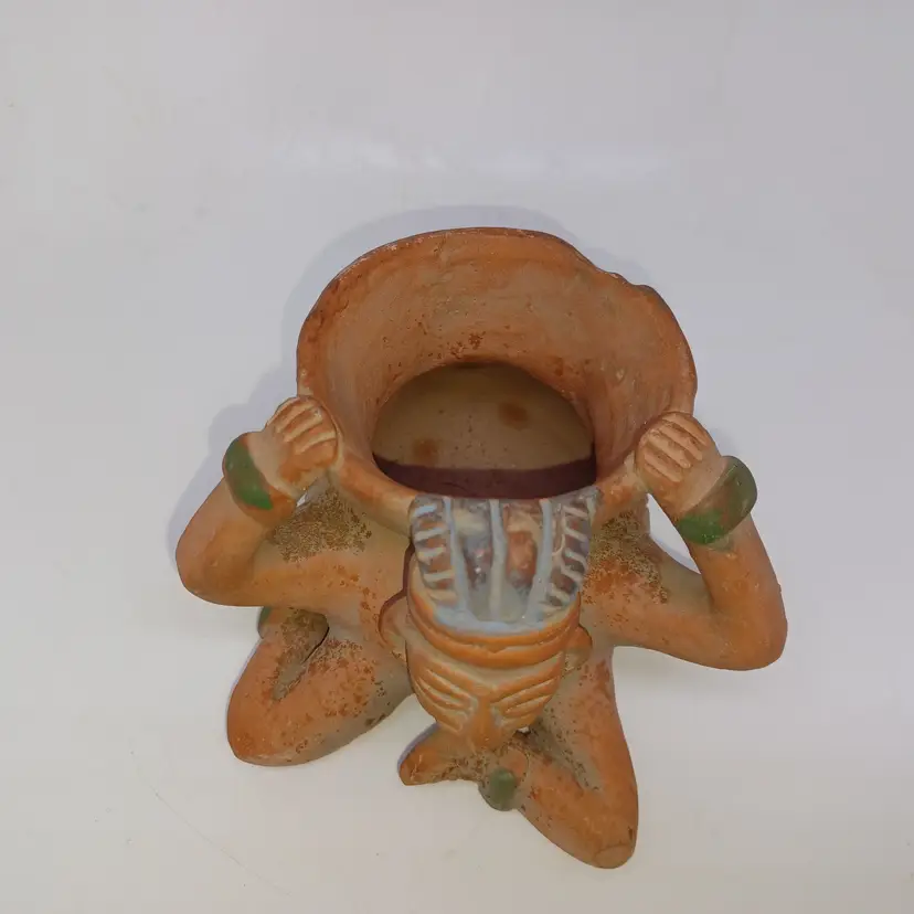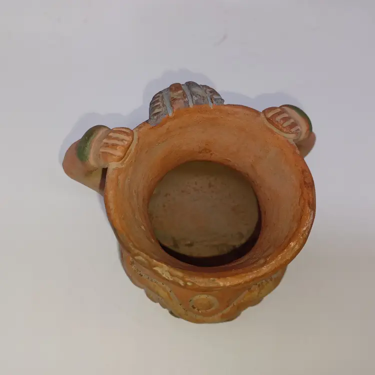 Terracotta Mexican Folk Art Clay Aztec Mayan Planter 3" tall Vintage In good condition does have a chip to the back but it does have age related wear does not detract from use or display please see all pictures as they are the best description all items from a smoke-free home with pets experienced fragile shipper
