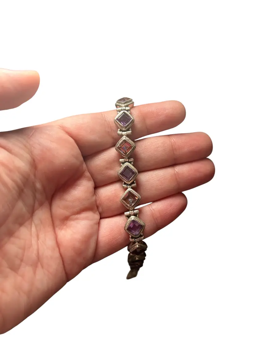 Details: • Origin: Mexico • Material: Sterling silver (marked 925), mystic topaz stones • Length: Adjustable with chain extension • Closure: Lobster clasp • Condition: Used vintage condition with light wear consistent with age (see photos) • Markings: 925