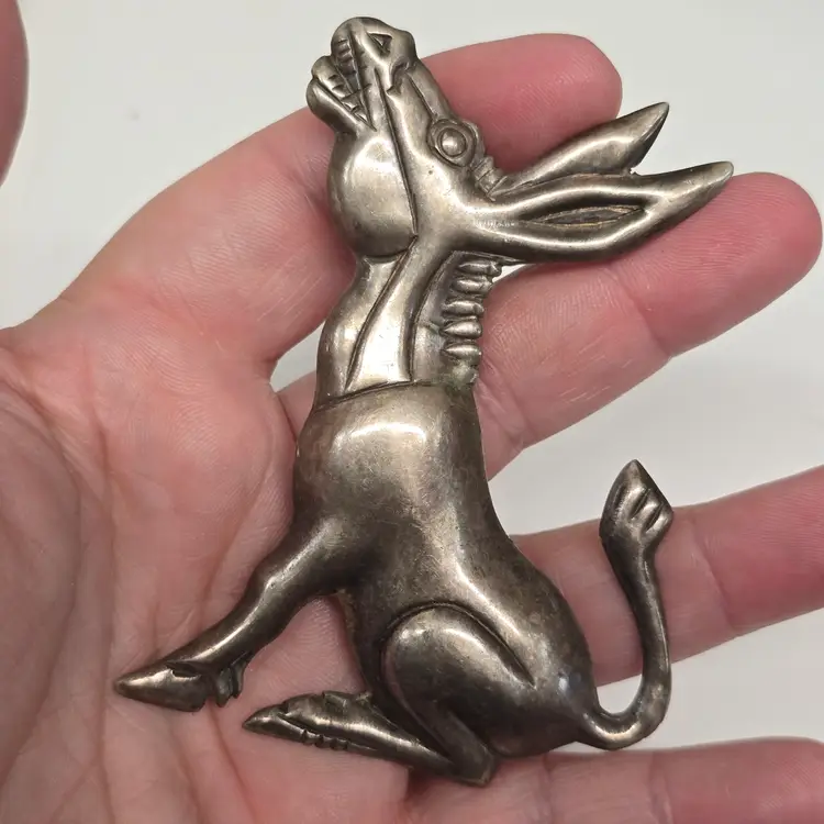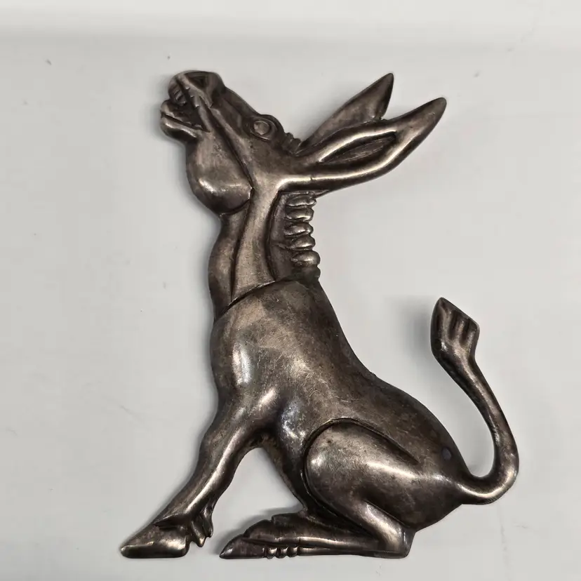Vintage Mexican Sterling Silver Braying Donkey Brooch Or Scarf Pin. **Please note that the stick part of the pin is slightly bent. Otherwise in very nice pre-owned condition.