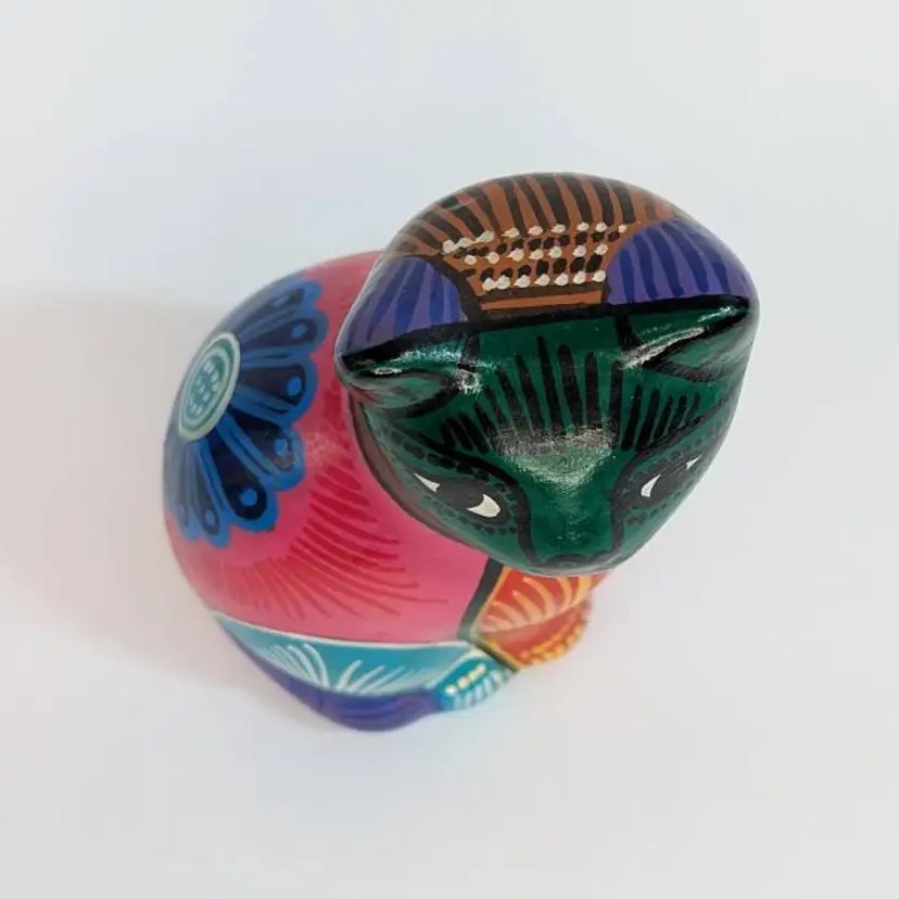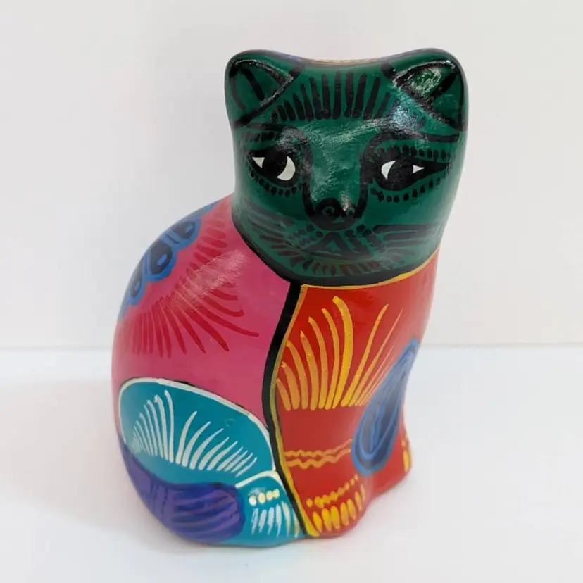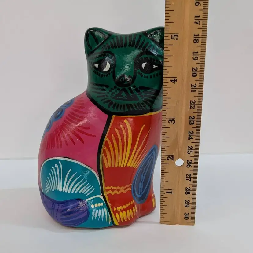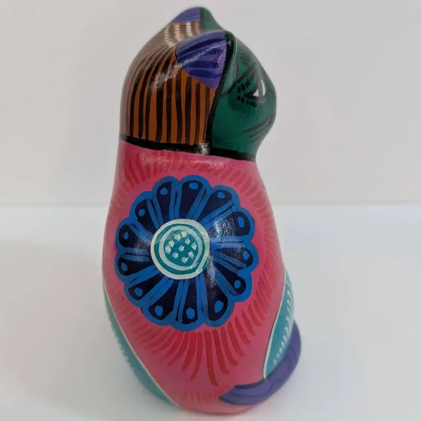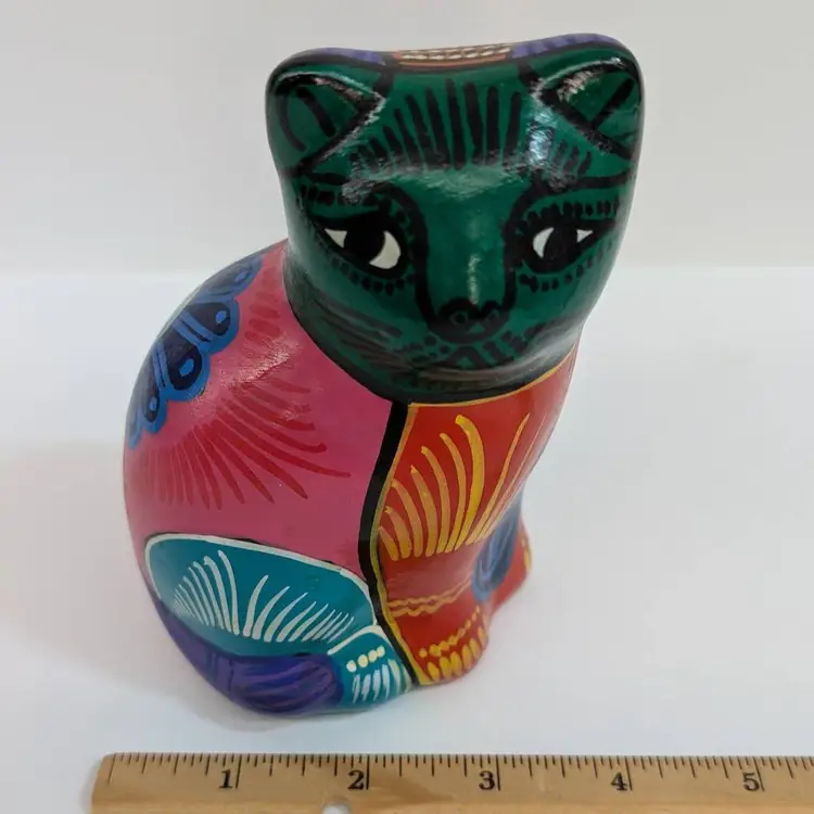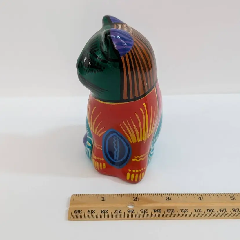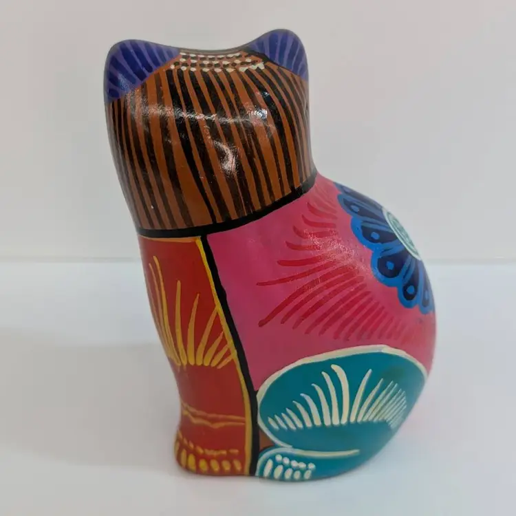 Bright and colorful sitting cat with a floral design. In nice, used condition with no chips or cracks. Measurements ~ 4 x 2.25 x 2.5"