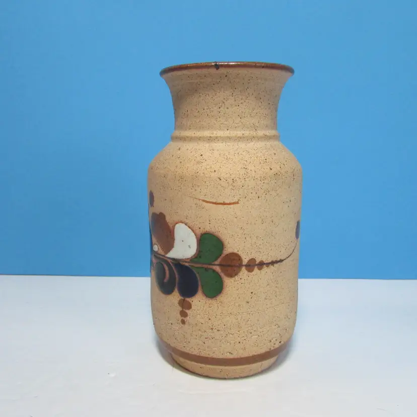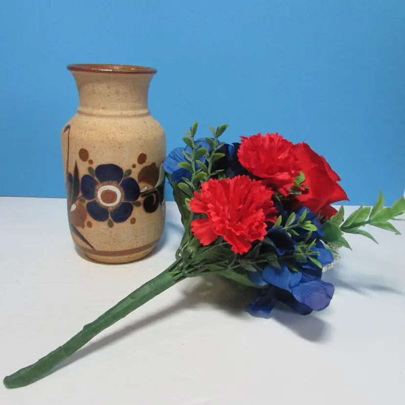This lovely vase is in good condition, it is about 6 1/2" tall. We added some flowers to make a patriotic decor. This is shipped from a smoke free home. Thanks for looking!